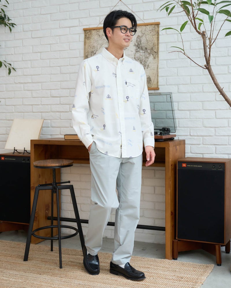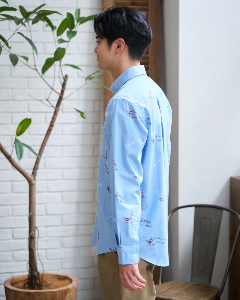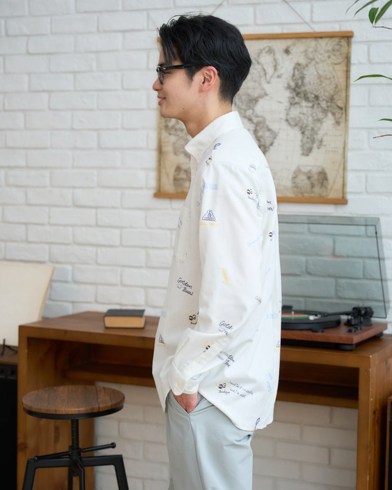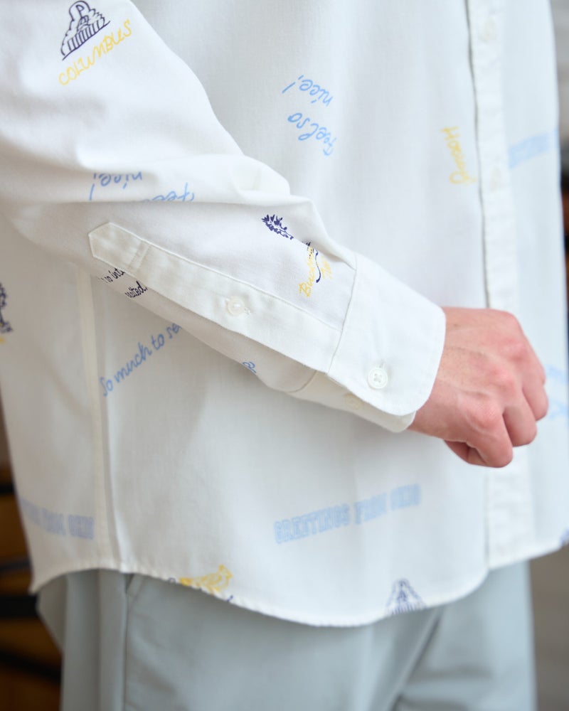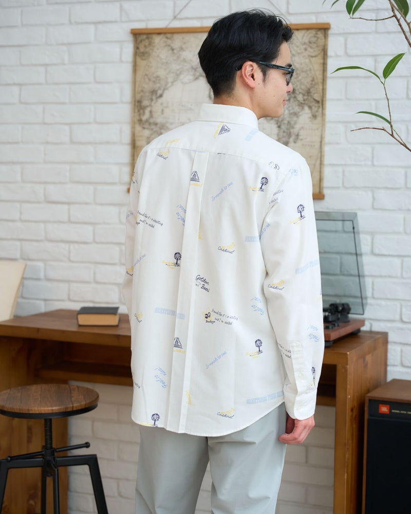トラッドの代名詞であるボタンダウンのオックスシャツを、自由奔放なキャンバスへと昇華させました。 しっかりとした肉厚なオックス生地に施されたのは、トレンド感溢れるグラフィティ風のプリント。端正な襟元と、エッジの効いたアートワークの対比が、退屈な日常のコーディネートに鮮やかな刺激を与えてくれます。落ち着いた大人の着こなしに、あえてハズしとして取り入れたい、センスが光る逸品です。デニムやチノパンと合わせて大人のカジュアルをお楽しみください。