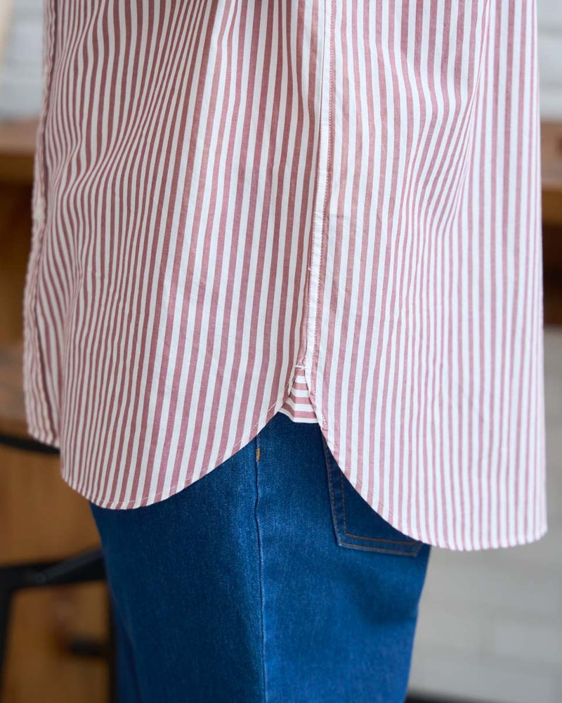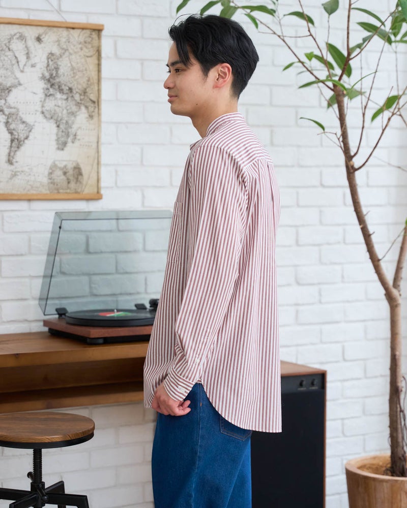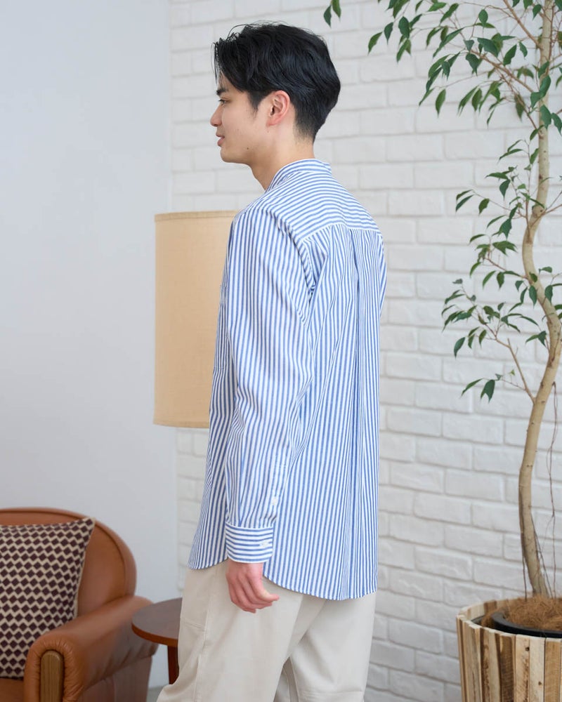環境に配慮したオーガニックコットン100%を使用したストライプシャツです。シンプルなロンドンストライプは着合わせのしやすさが特徴です。アウターのインナーから、羽織りとしても活躍する万能なシャツです。