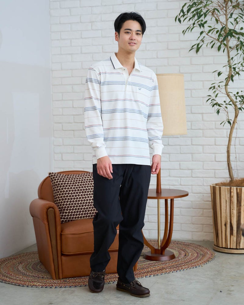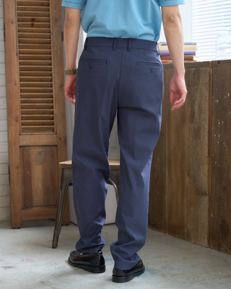 ストレッチ性に優れ、快適なはき心地を追求したイージーパンツです。伸長率134%、回復率は98%(24時間後)とよく伸びて、よく戻る超ストレッチ素材です。表情のあるタテ組織の生地で上品に仕上げました。シルエットは膝下から裾にかけて細くなるスリムフィット。ノータックですっきりとした印象です。
