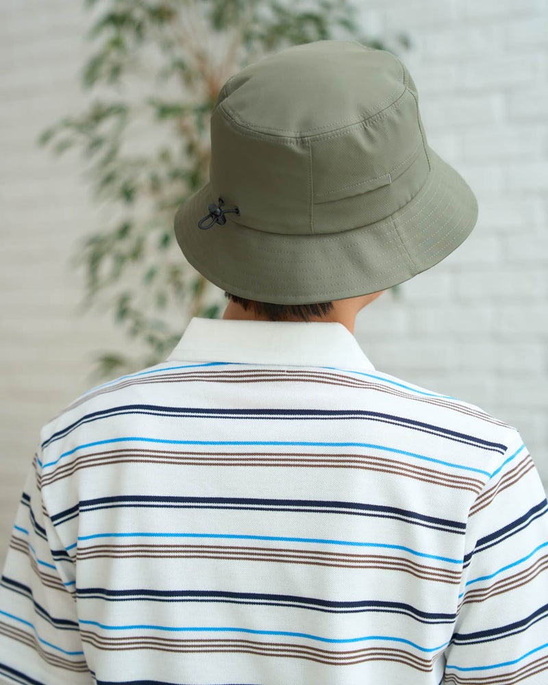 シンプルでコーディネートに馴染むバケットハットです。後部分で頭回りの調節が可能なので、どなたでも使いやすいのがポイントです。普段のコーディネートにプラスするだけで、日差しからも守ってくれて、こなれた印象にも仕上がる、一つは持っておきたいアイテムです。