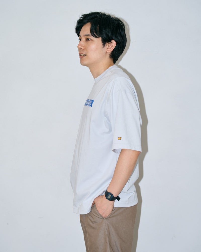今回のテーマは「冒険」。はじけるような動きと存在感を持たせた、ポップで明るいロゴデザイン。視線を引きつける印象的な仕上がりで、コーディネートのアクセントとしても活躍します。 1枚で着たときはもちろん、重ね着した際にもさりげなく覗き、スタイリングに遊び心をプラスします。素材には、接触冷感と吸水速乾性を備えたプレーティング天竺を使用。暑い季節でも快適な着心地をキープします。襟はバインダー仕様で、100回洗濯してもヨレにくく、長く愛用いただけます。シルエットはややゆとりを持たせたリラックスフィット。1枚でラフに着こなせる、デザイン性と機能性を兼ね備えた一着です。