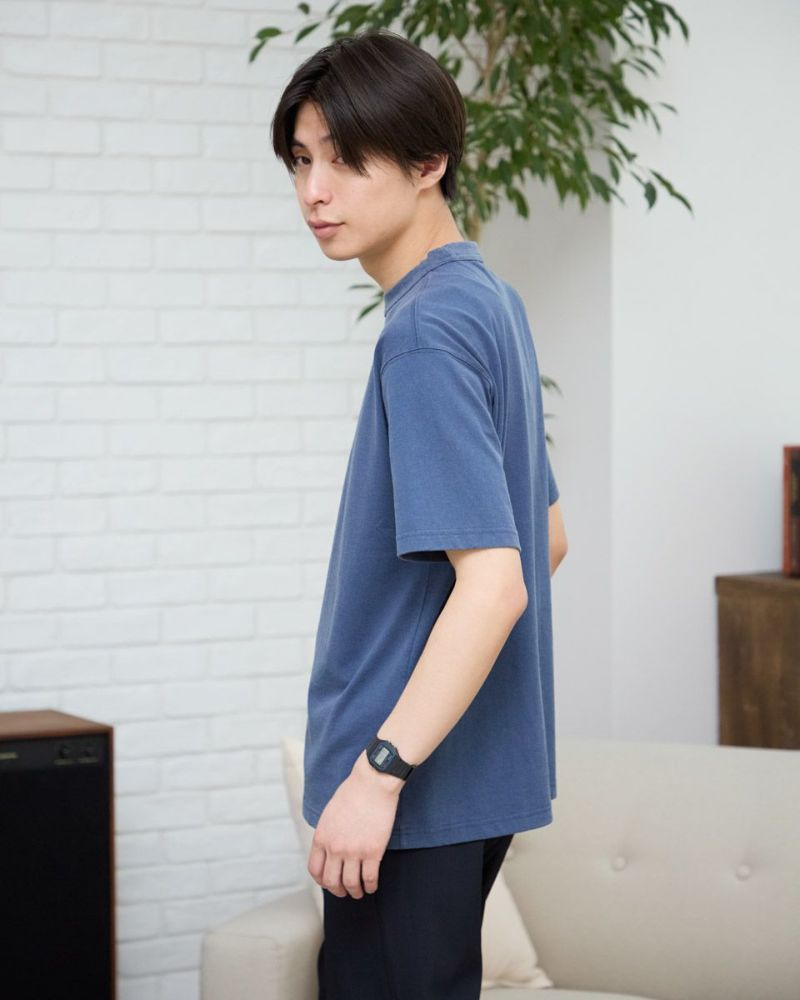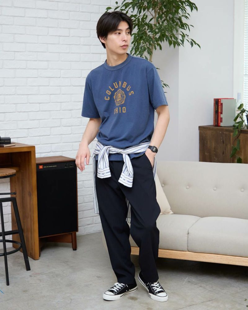 古着のような風合いに仕上げたロゴTシャツです。 研磨石(ストーン)と酵素(バイオ)を使った水洗い加工を施すことで、色落ちや独特な風合いが特徴です。 襟ぐりは身頃同色染で強度のあるフライスを使用、バインダー始末にすることでヨレ にくさを実現しました。 モデル身長: 180 cm 着用サイズ: L サイズ Golden Bear Men's カットソー (Men's) 【着用アイテム】314R2414 ラガーシャツ 314R4202 麻混ストライプシャツ 314R7740 イージーパンツ 314R7701 カーゴハーフパンツ