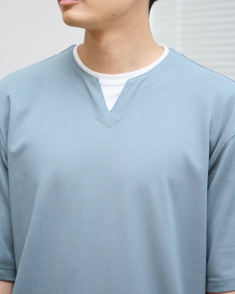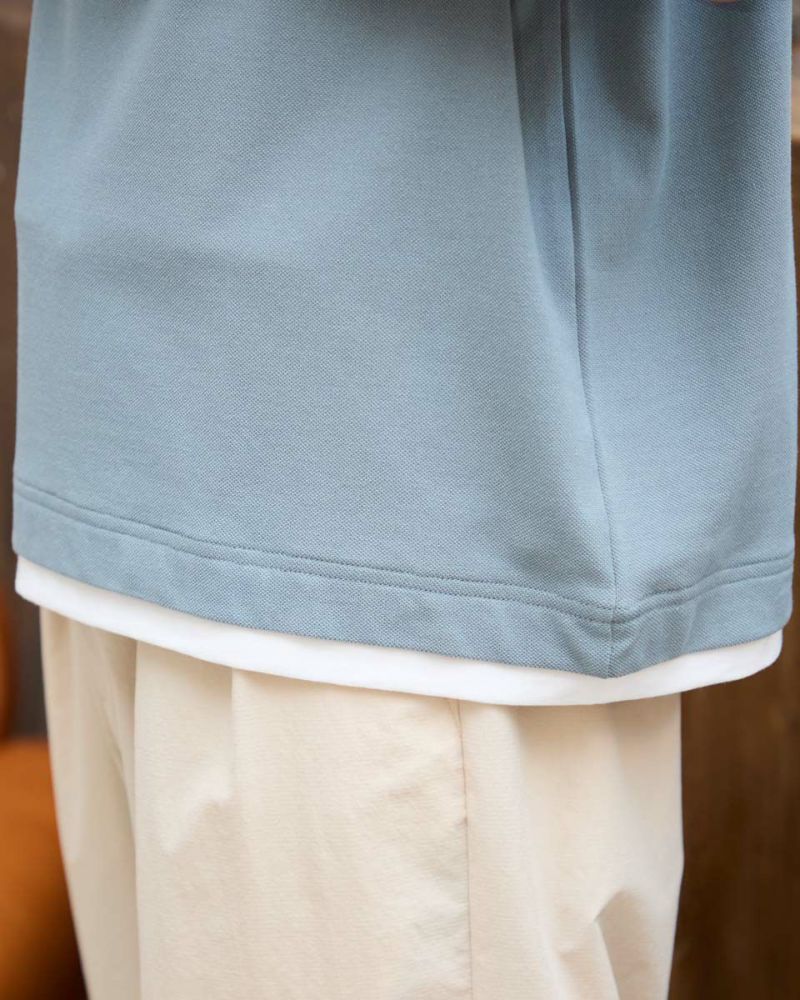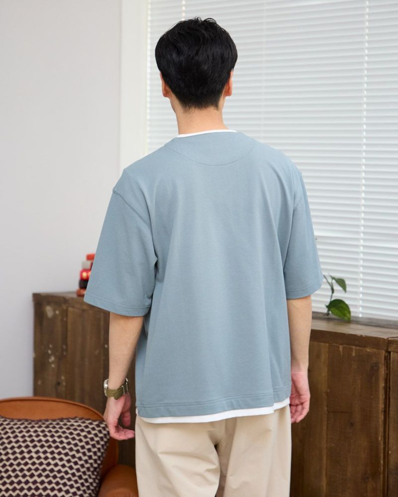 表情のある鹿の子素材を使用したレイヤードTシャツです。襟・裾から覗く天竺地が重ね着しているように演出します。ややゆったりとしたリラックスシルエットです。 モデル身長: 176 cm 着用サイズ: L サイズ Golden Bear Men's カットソー (Men's) 【着用アイテム】314R5701 スラックス 314R7701 カーゴハーフパンツ