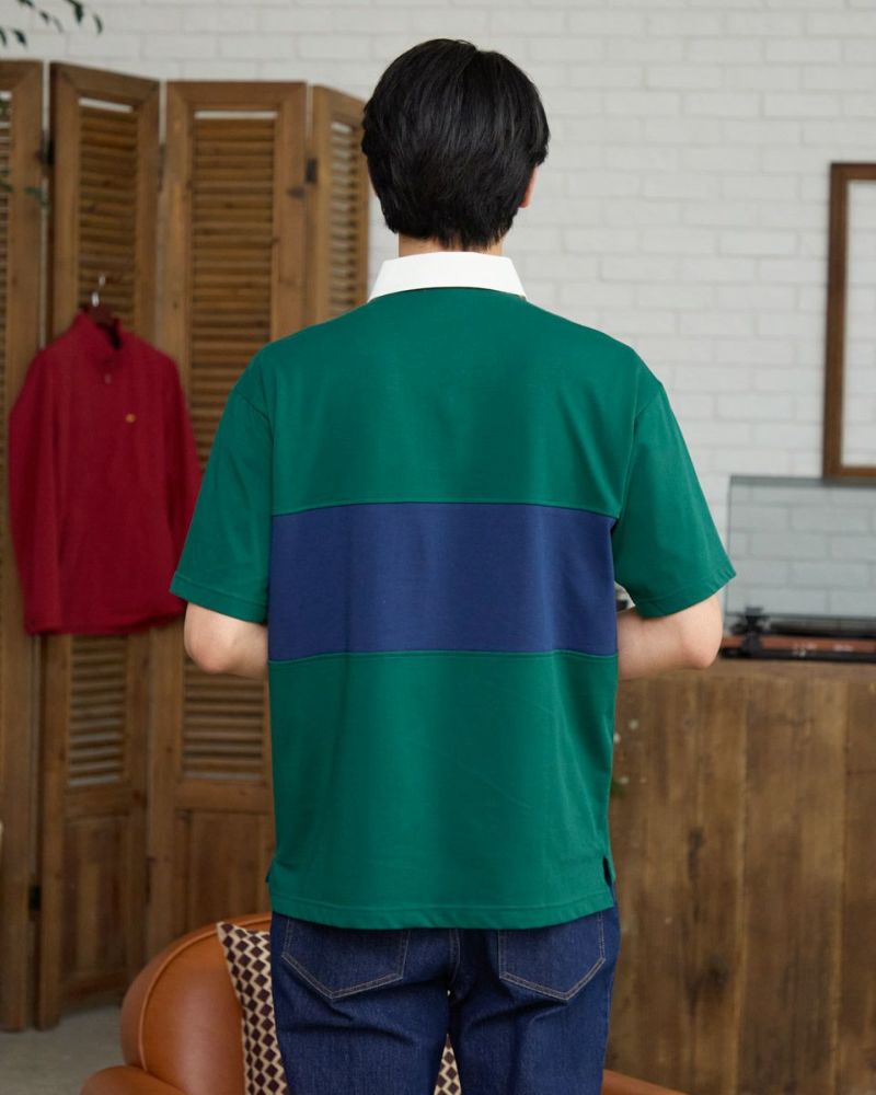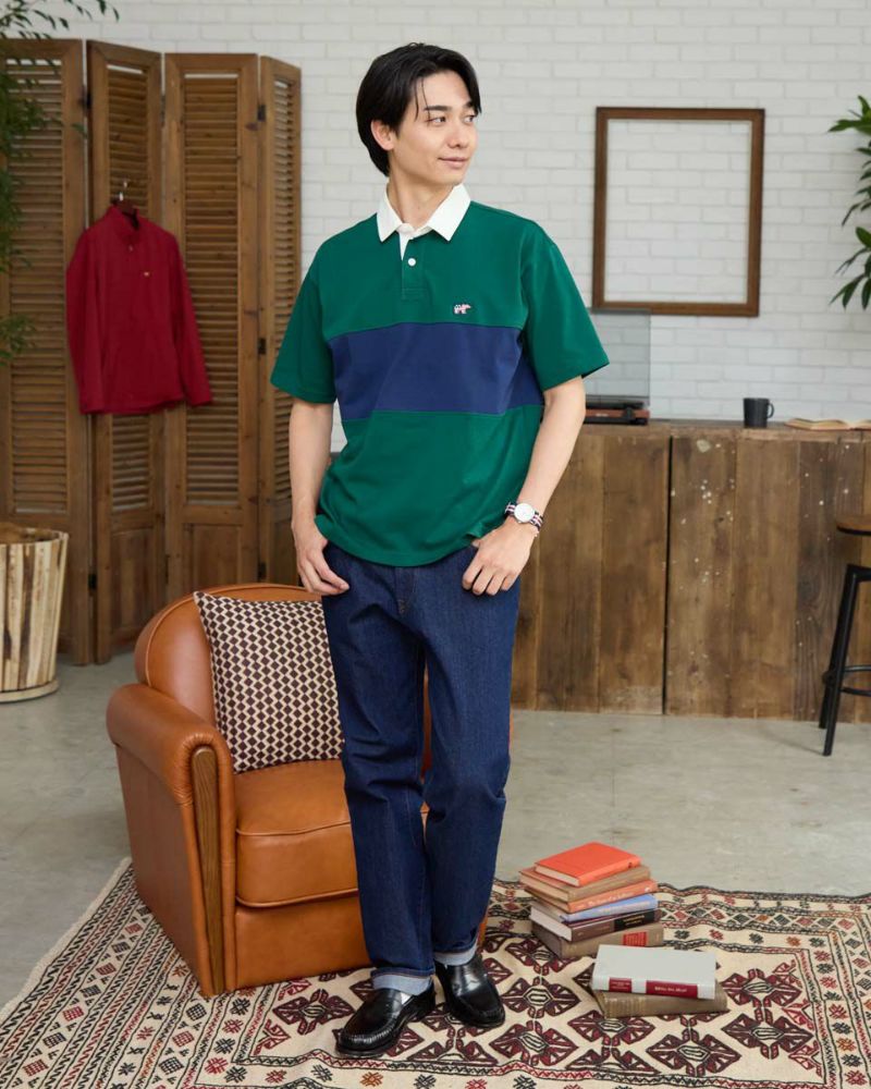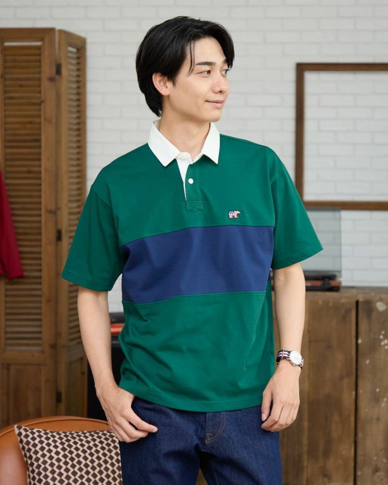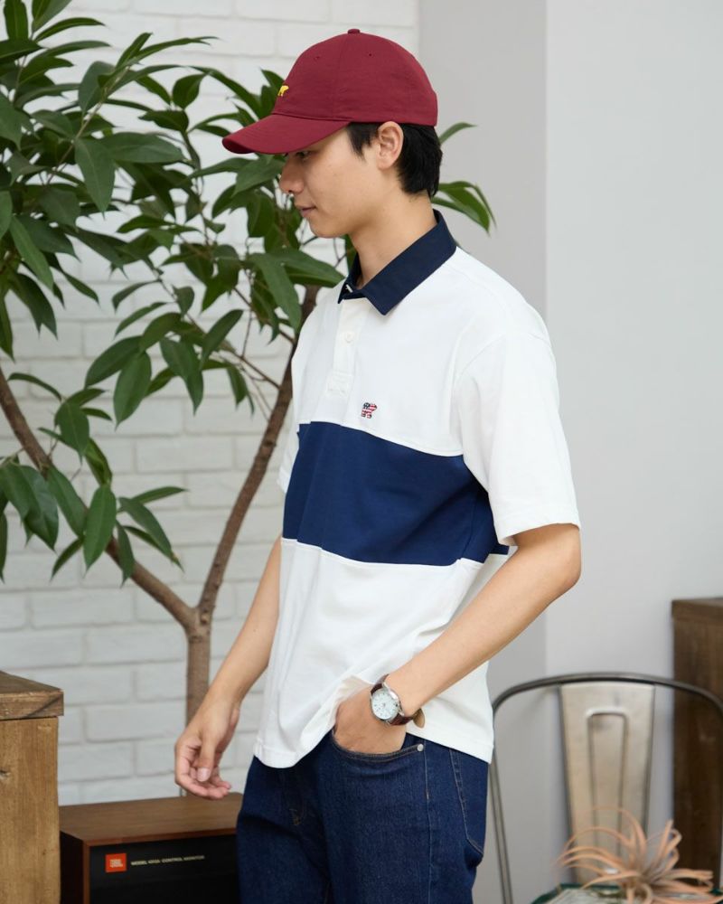 アメリカの星条旗をモチーフにしたクマ刺繍入りのラガーシャツです。カラーブロックデザインでスポーティな印象に仕上げました。デニムやカーゴパンツと合わせたアメカジスタイルから、ワイドパンツと組み合わせたトレンド感のあるコーディネートも楽しめます。 モデル身長: 186・180 cm 着用サイズ: L サイズ Golden Bear Men's カットソー (Men's) 【着用アイテム】314R7701 カーゴハーフパンツ 314R7740 イージーパンツ 314R8702 デニム
