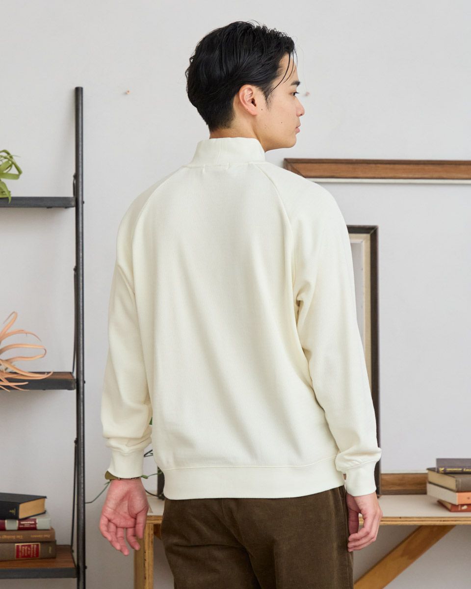 ラグランスリーブのハイネックスウェットです。サーマル素材の裏面をシャギー起毛しており、滑らかな肌ざわりと暖かさが特徴です。表面感があるニットのような見た目ですが、家庭洗濯が可能でお手入れのしやすさがポイントです。 モデル身長: 176cm 着用サイズ: L サイズ Golden Bear MEN カットソー (MEN) 【着用アイテム】317RE130 Pコート 314RE632 洗えるGBラムウールニット 314RE721 ストレッチコーデュロイパンツ