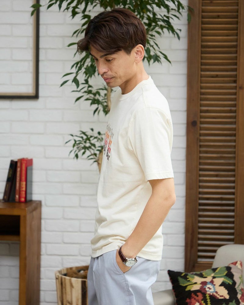 ロゴをグラデーションで表現したプリントTシャツです。環境にも肌にも優しいオーガニックコットン100%素材を使用しています。襟ぐりは身頃同色染で強度のあるフライスを使用、バインダー始末にすることでヨレにくさを実現しました。 モデル身長: 180 cm 着用サイズ: L サイズ Golden Bear MEN カットソー (MEN) キッズサイズはこちら ウィメンズサイズはこちら 家族コーディネートアイテムはこちら