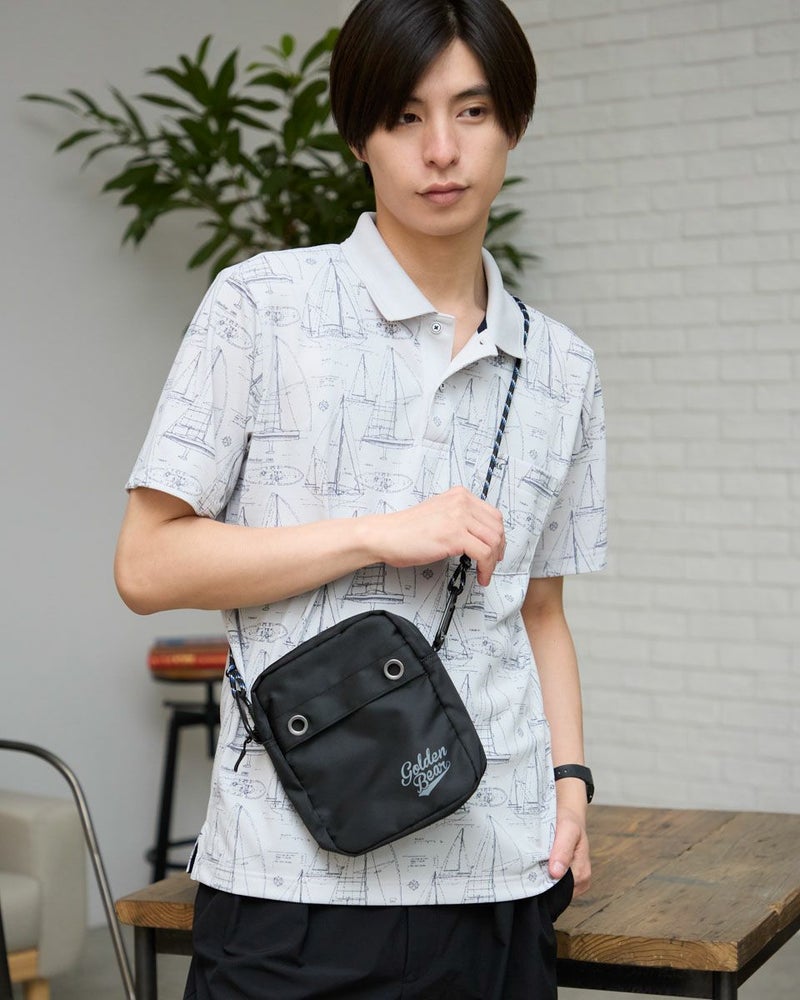 軽量でスタイリッシュなサコッシュ型ショルダーバッグです。財布、スマホ、ハンカチなど身の回り品を収納できます。旅行はもちろん、フェスやキャンプ、ちょっとしたお出かけの際にオススメのバックです。 Golden Bear MEN アクセサリ (MEN) 【着用アイテム】314R6527 プリントポロシャツ 314R7516 キーネックTシャツ 314R7710 ワイドイージーパンツ