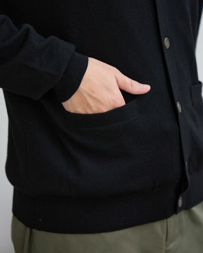 ベーシックなニットカーディガンです。メリノウール100%を使用した12G天竺の編地です。優れた保温性と肌触りが特徴です。繊維がとても細かいため、チクチクする不快感を感じにくいのも魅力です。 お手入れが楽な家庭洗濯(手洗い)が可能です。
