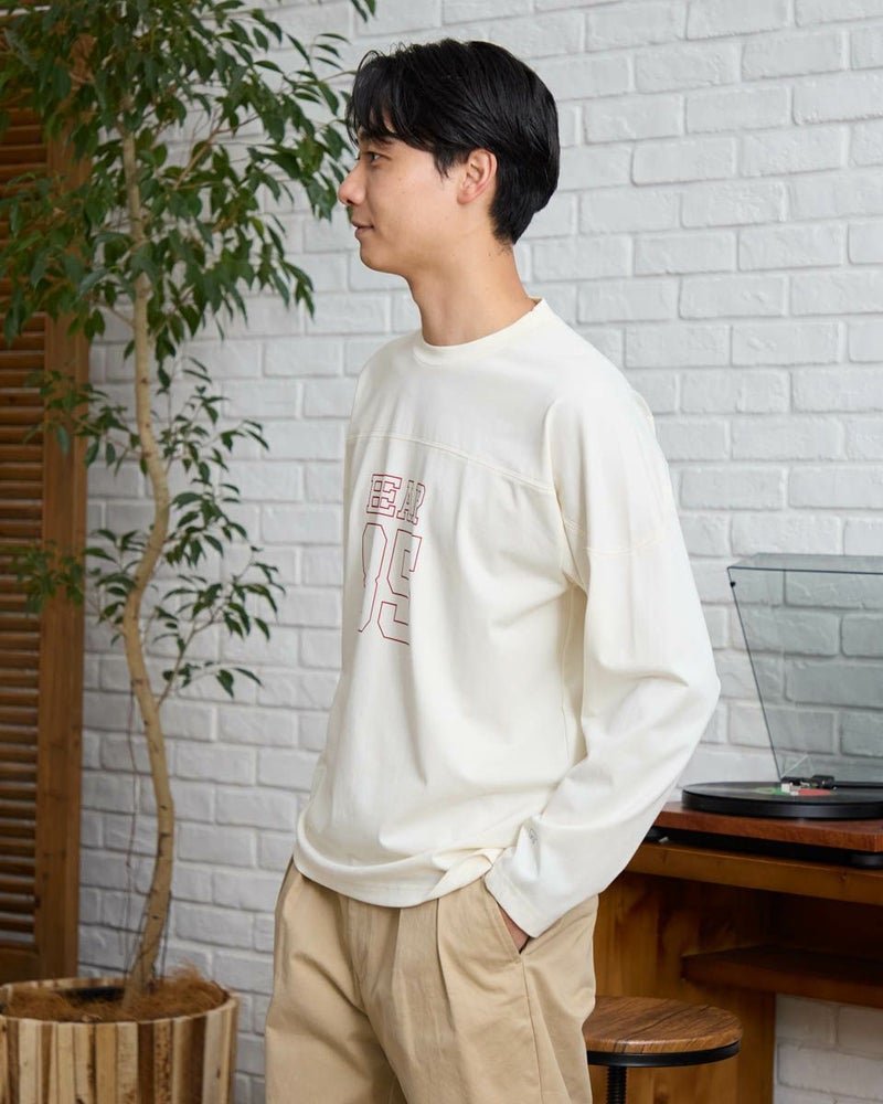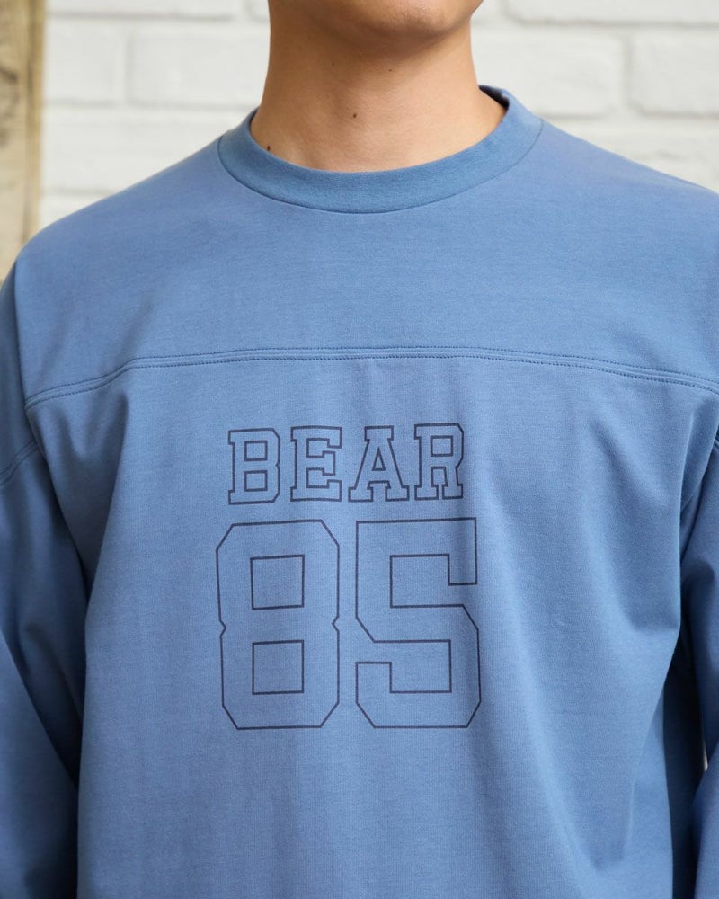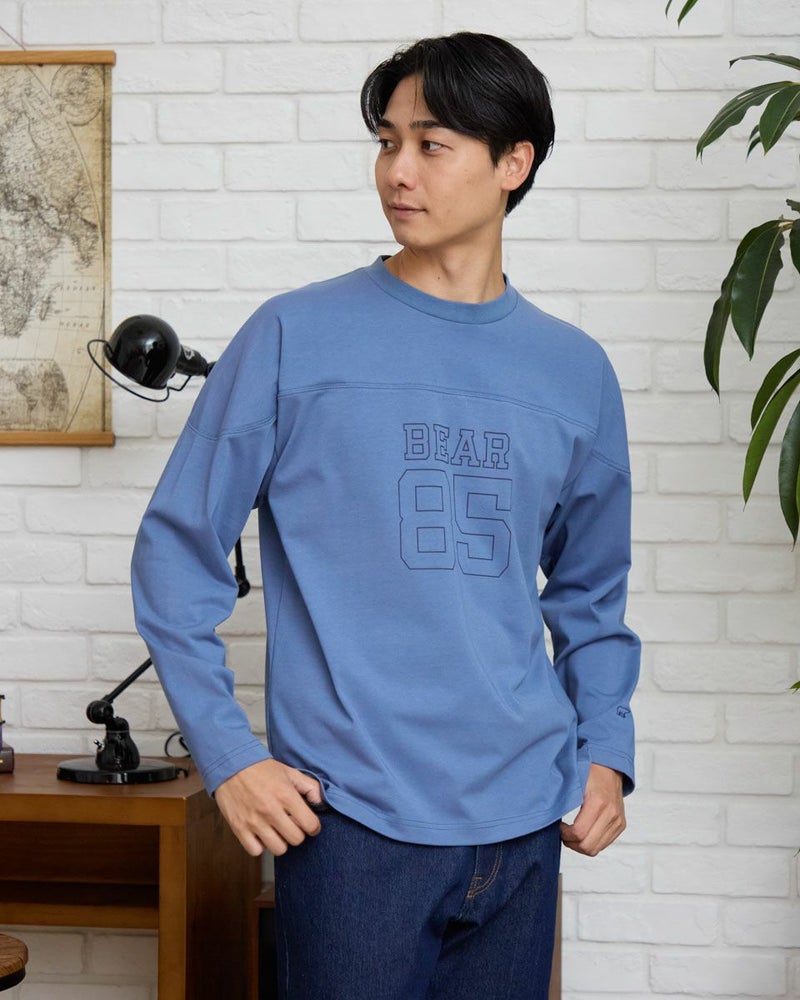 胸にナンバリングとロゴをプリントしたフットボールTシャツです。滑らかな肌ざわりのプレーティング天竺生地を使用しています。デニムやワイドパンツなどと合わせたカジュアルスタイルがおすすめです。 モデル身長: 180 cm 着用サイズ: L サイズ 同デザイン通常サイズはこちら Golden Bear KING SIZE(MEN 大きいサイズ) カットソー (MEN) 【着用アイテム】314RC231 デニムシャツ 314R8702 デニム 314RC700 ワイドチノ
