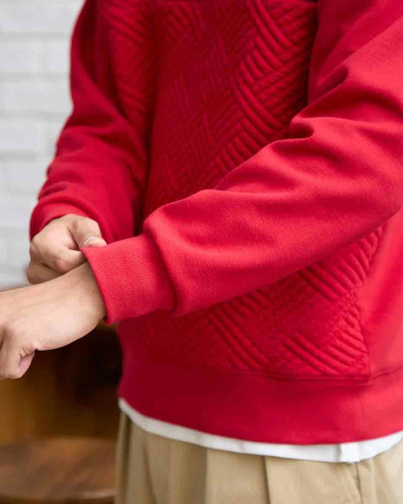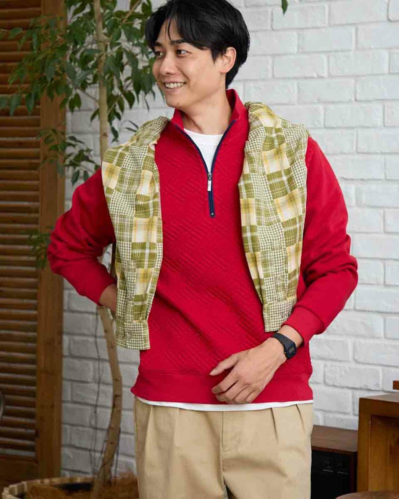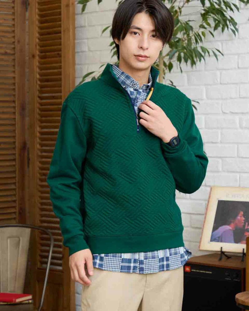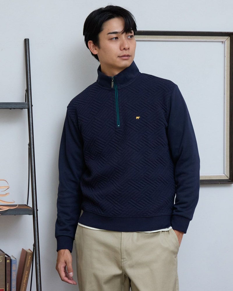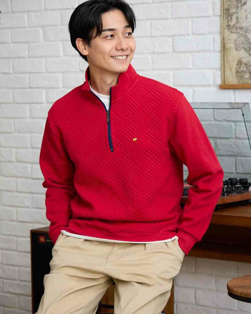 ハーフZIP仕様のスウェットです。前身頃はフクレジャカードで幾何学柄を立体的に表現しました。後身頃、袖はダンボールニット生地を使用しています。様々なコーディネートに着合わせしやすいスウェットです。 モデル身長: 180 cm 着用サイズ: L サイズ 同デザイン通常サイズはこちら Golden Bear KING SIZE(MEN 大きいサイズ) カットソー (MEN) 【着用アイテム】314RC204 ストライプシャツ 314RC207 パッチワークシャツ 314R8702 デニム 314RC700 ワイドチノ