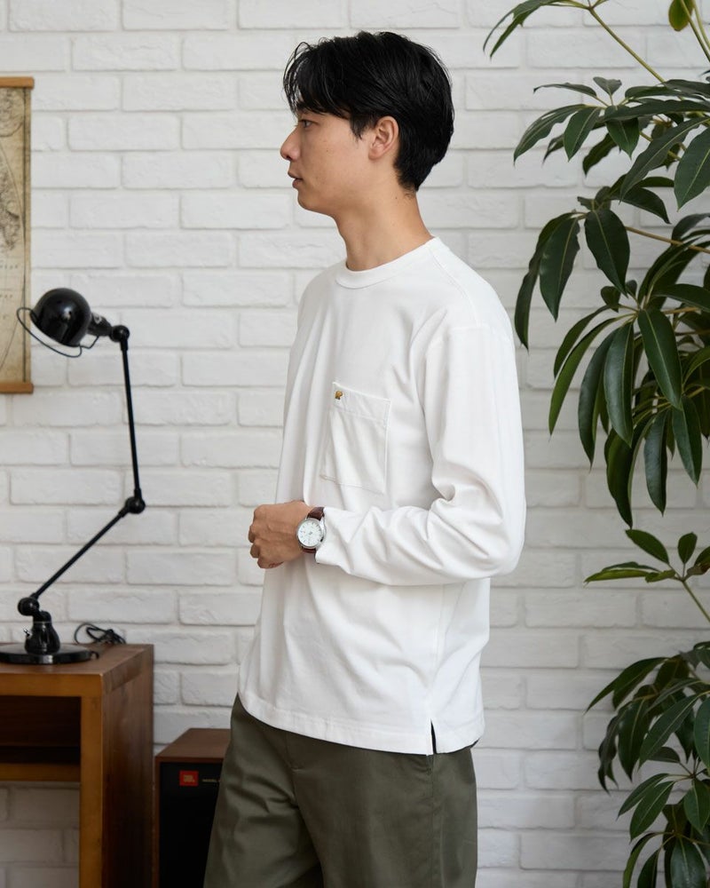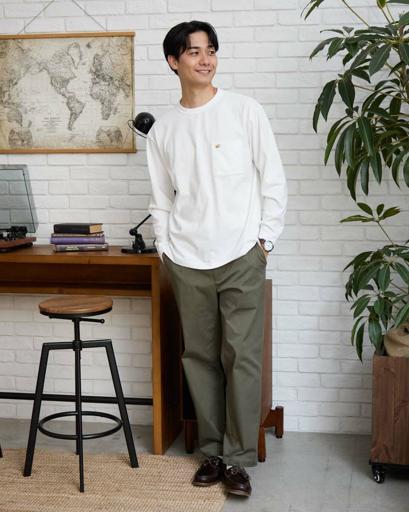 吸水速乾性に優れ、透けにくく、滑らかな肌触りが特長のプレーティング天竺生地を使用した襟がヨレにくい長袖Tシャツです。襟ぐりは身頃同色染で強度のあるフライスを使用 、バインダー始末にすることでヨレにくさを実現しました。ほどよいリラックスシルエットのサイズ感です。 モデル身長: 180 cm 着用サイズ: L サイズ 同デザイン通常サイズはこちら Golden Bear KING SIZE(MEN 大きいサイズ) カットソー (MEN) 家族コーディネートアイテムはこちら 【着用アイテム】314RC704 イージーパンツ