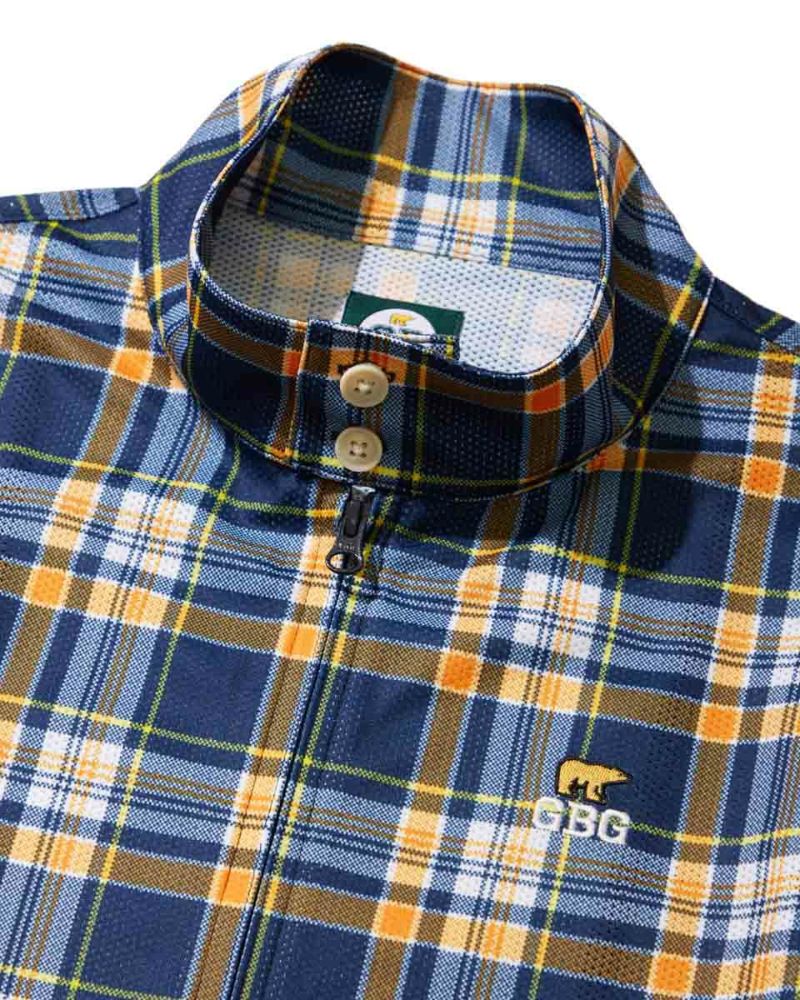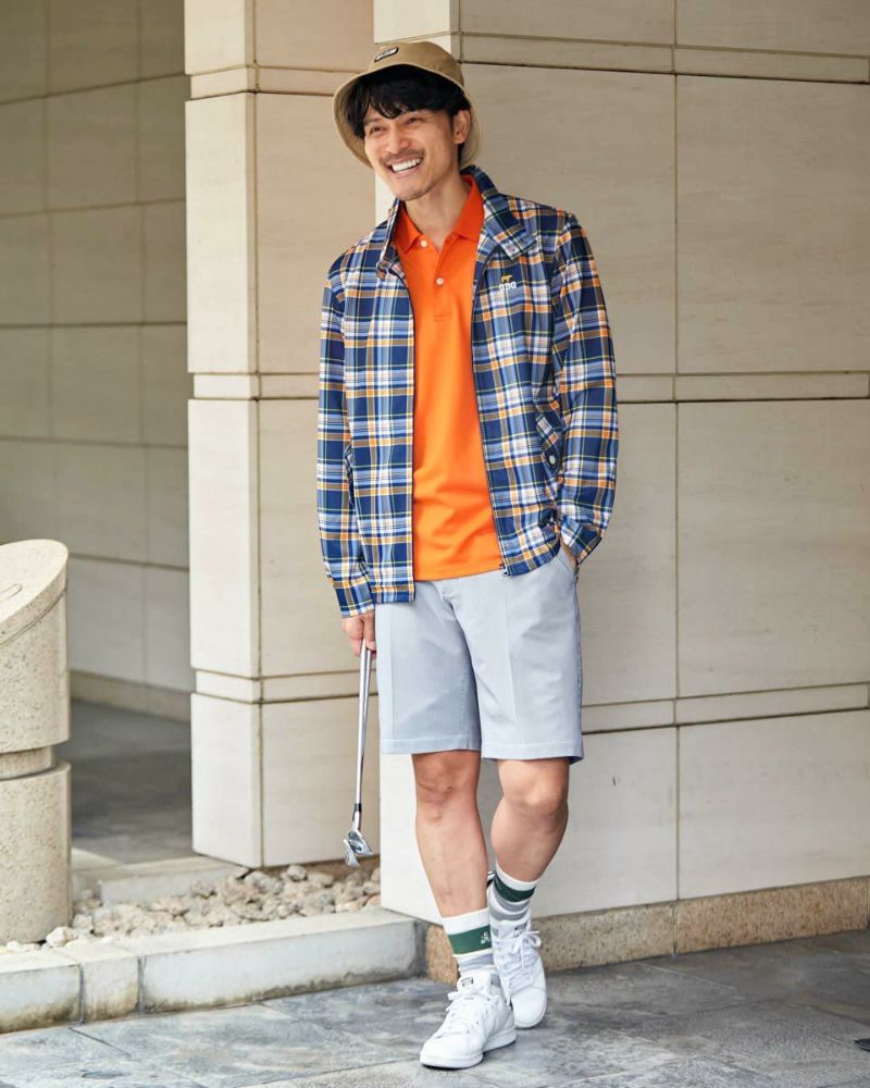 トラッドなチェック柄をプリントしたG-4ジャケットです。穴が開いた特殊なカットソー素材を使用しています。通気性抜群で吸水速乾・接触冷感機能もついた万能素材です。カットソー素材なので、シワ等気にせず、気軽に持ち運べます。初夏の軽い羽織りとしてオススメです! モデル身長: 180 cm 着用サイズ: L サイズ GB GOLF アウター (Men's) 【着用アイテム】 SPIKE ヘンリーネックT (品番: 312Q4542 ) GBG スラックス (品番: 312Q3701 ) BEAR ポロシャツ (品番: 312Q5560 ) GBG ショーツ (品番: 312Q4710 ) TOUR キャップ (品番: 312Q1000 ) JACK バケットハット (品番: 312Q3001 )