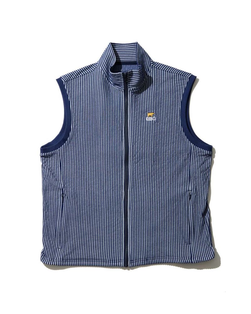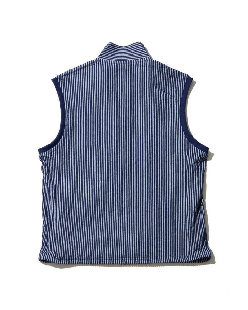 サッカー素材を使用したベストです。清涼感のある見た目に加え、吸水速乾の機能をプラスしました。カットソーなので、シワ等気にせず気軽に持ち運べます。初夏の軽い羽織にオススメです。