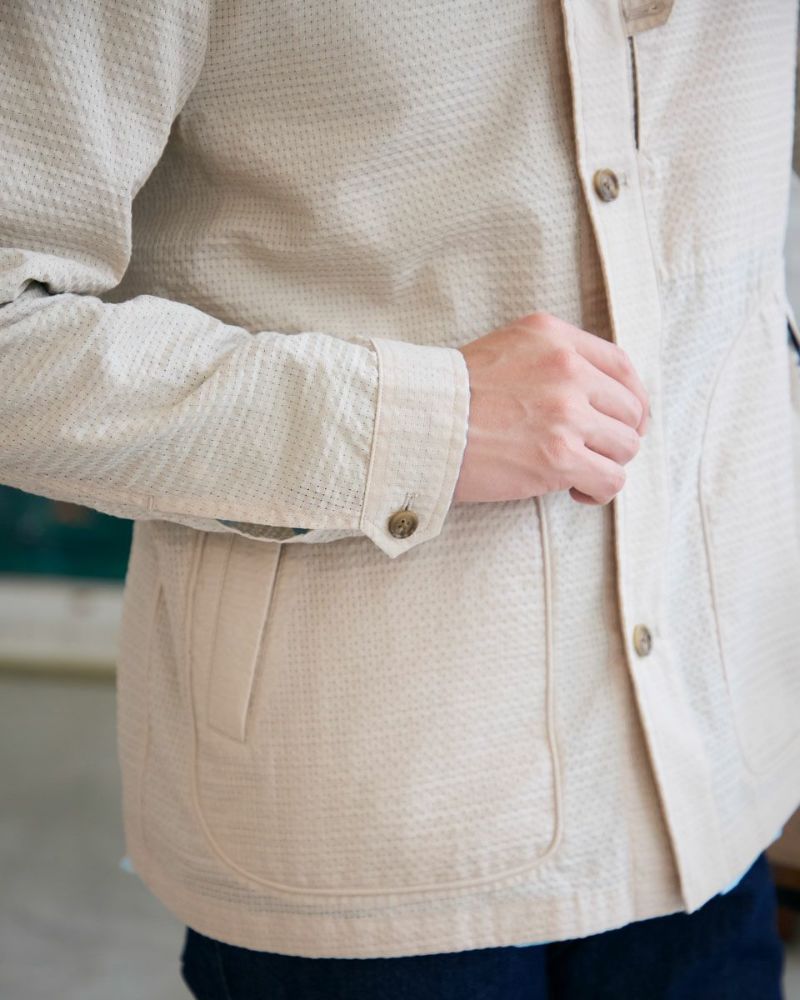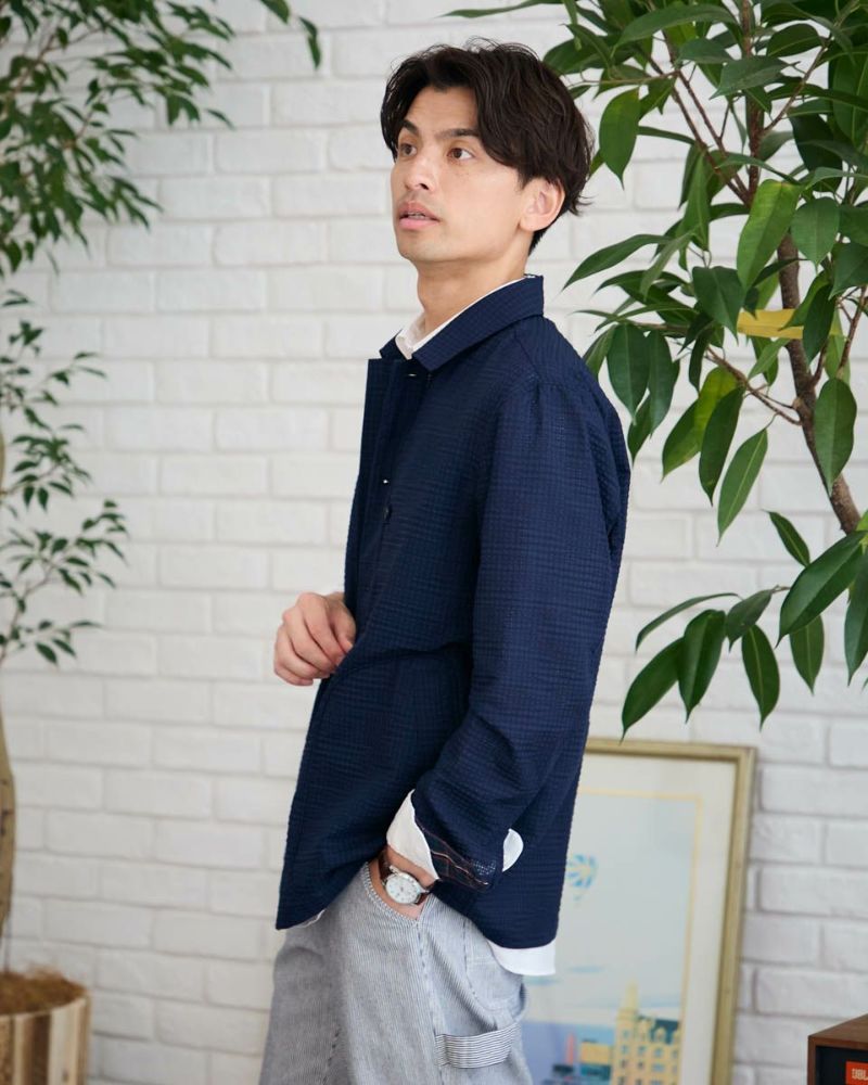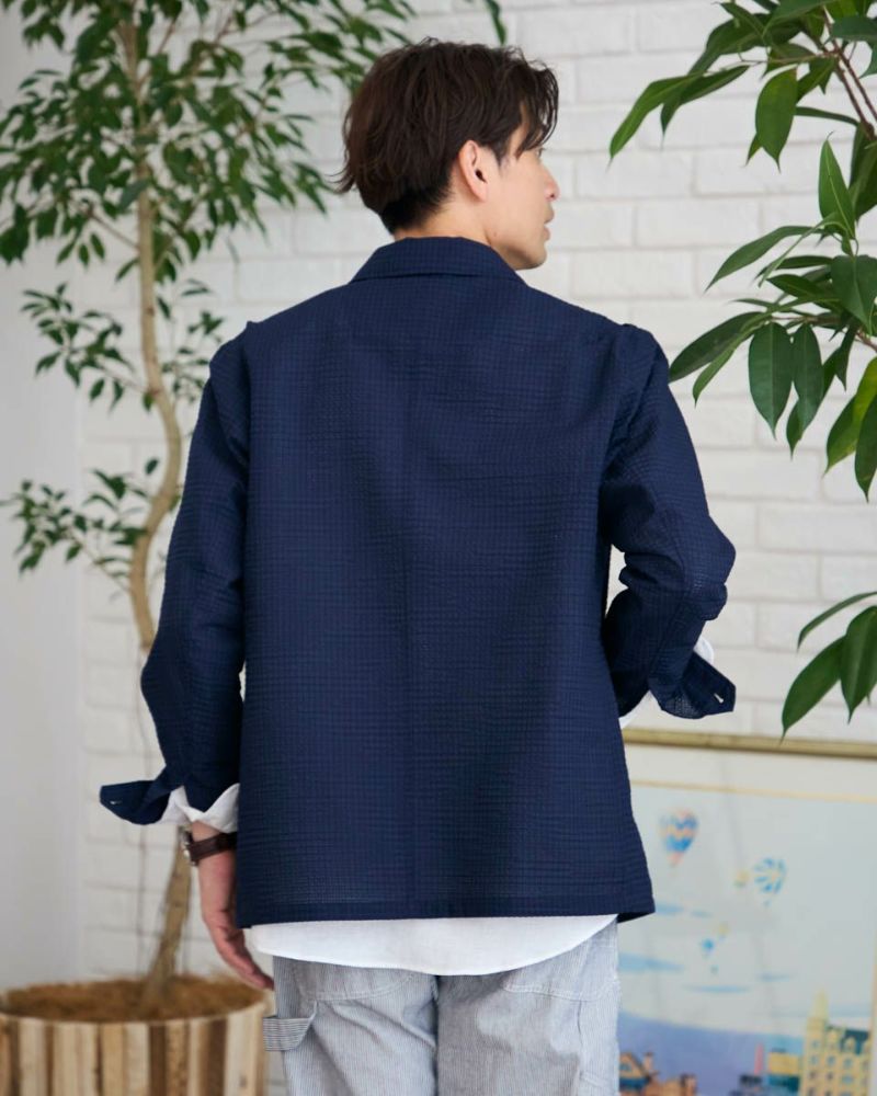 軽く、涼しく羽織れるカバーオールです。通気性に優れた素材を使用しています。サッカー組織のさらっとした肌触りと、生地に穴をあけた風通しの良さが特徴です。ご家庭でのお洗濯(手洗い)が可能です。