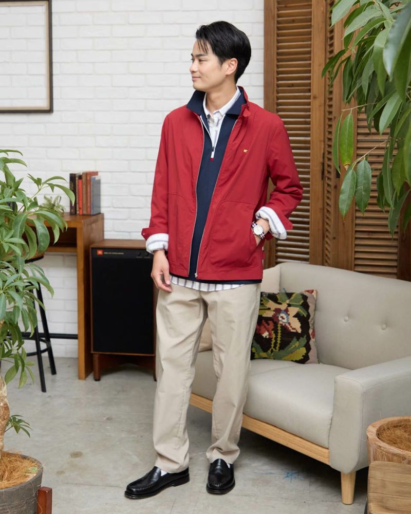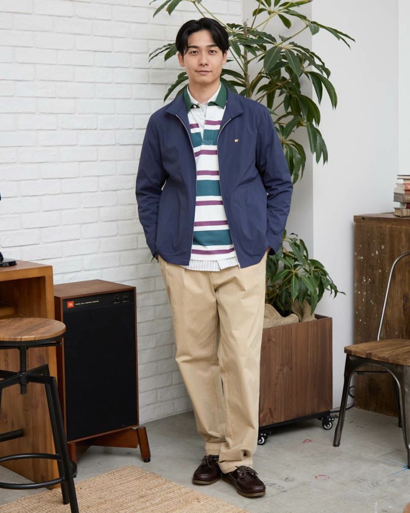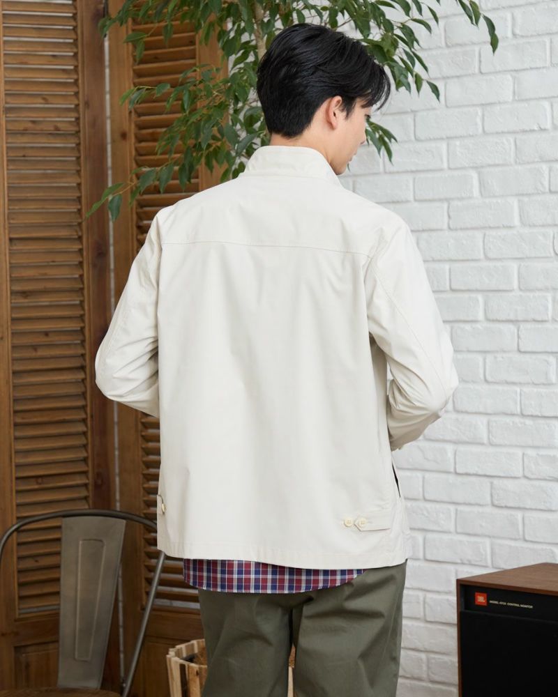 軽く羽織れるドライビングジャケットです。天然素材のような風合いのポリエステルタフタ素材を使用しています。ご家庭でのお洗濯(手洗い)が可能で、お手入れのしやすさがポイントです。合わせるボトムスはデニムがオススメです。 モデル身長: 176 cm 着用サイズ: L サイズ Golden Bear Men's アウター (Men's) 【着用アイテム】314R8221 ストライプシャツ 314R8452 長袖ポロシャツ 314R8703 イージーパンツ