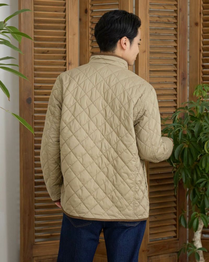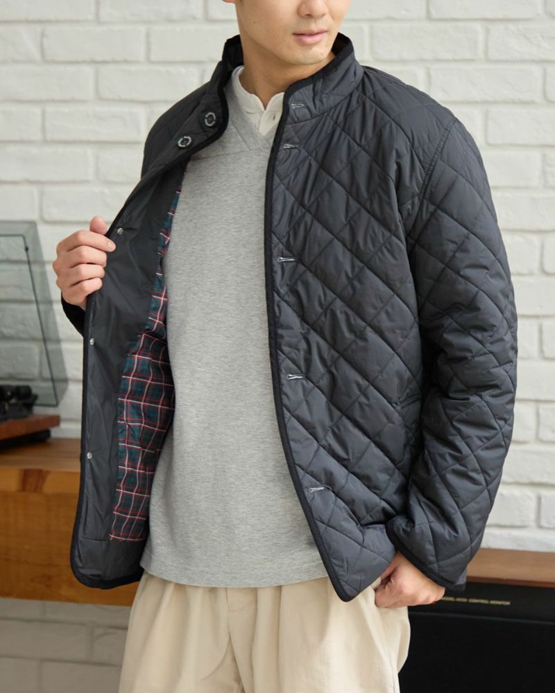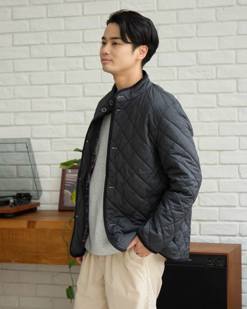 毎年ご好評いただいているキルトジャケットです。軽い着心地を実現する為、昨年より生地や附属の軽量化を実現。製品で約100g軽く仕上げました。前身頃をボタン仕様に変更し、着座しても快適な着心地がポイントです。中綿には原料の一部に植物由来の素材を配合し、ソフトな風合いと膨らみを実現しました。ご家庭の洗濯機で洗え、いつでも清潔に着用いただけます。様々なシーンで活躍するおすすめの一着です。 モデル身長: 176 cm 着用サイズ: L サイズ 同デザイン通常サイズはこちら Golden Bear KING SIZE(Men's 大きいサイズ) アウター (Men's) 【着用アイテム】314RC208 ストライプシャツ 314RD412 ヘンリーネックTシャツ 314RC471 Vネックスウェット 314RC642 Vネックベスト 314RC646 クルーネックニット 314RD433 オーガニックコットン長袖Tシャツ 314R8702 デニム 314RC700 ワイドチノ 314RC704 イージーパンツ