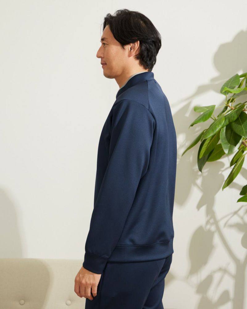 ハーフZIPスウェットのトップス単品のホームウェアです。動きやすいダンボールポリエステル素材を使用しました。着脱しやすいハーフジップのスタイルで、お散歩やちょっとしたお買い物などカジュアルに着用いただけます。春から秋にかけて、長い期間着用可能です。