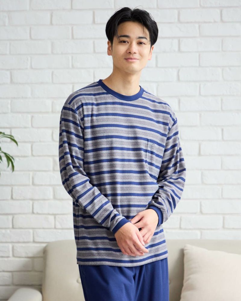 肌ざわりの良い梨地素材を使用した、リラックスパジャマです。サラッとした着心地をお楽しみください。