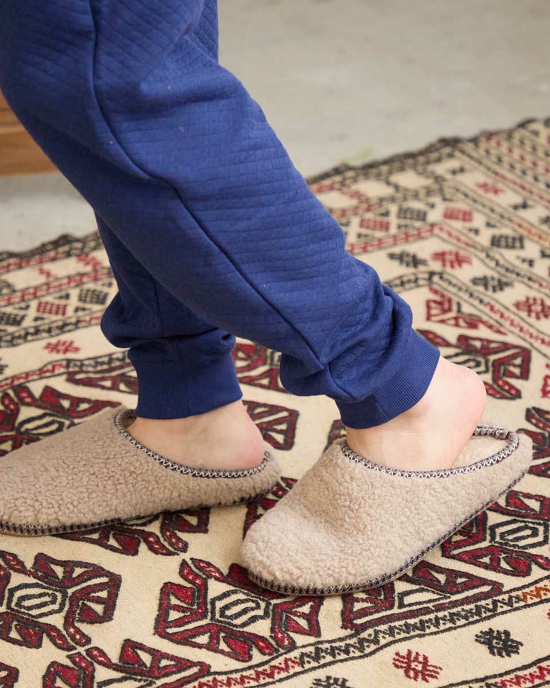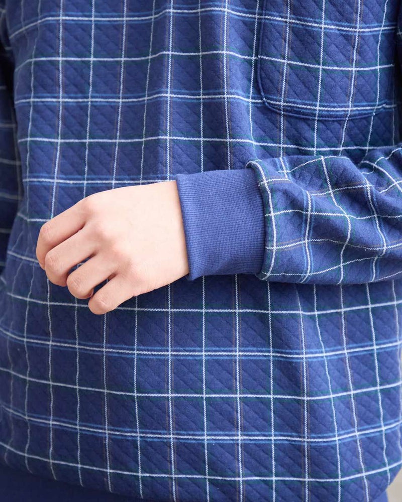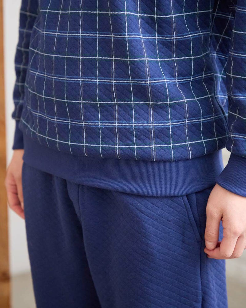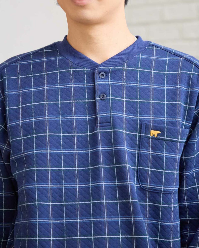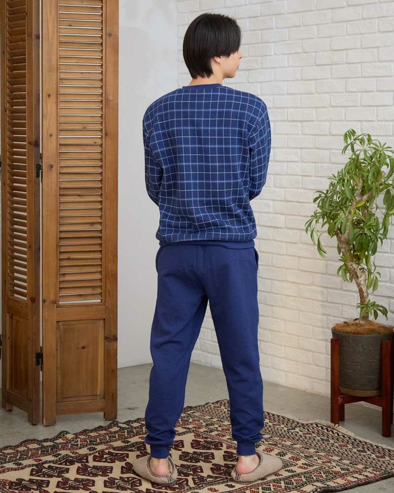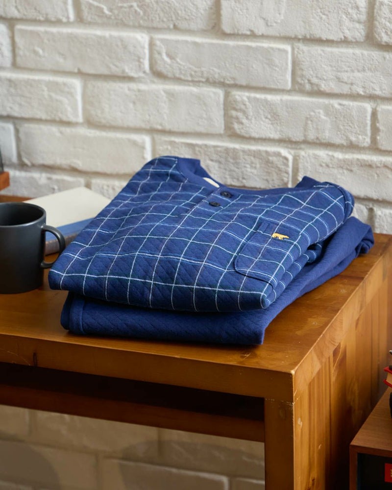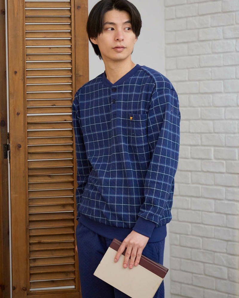 寒さが深まる秋冬に頼れる、長袖・長ズボンのカットソーパジャマです。ほどよい厚みのある素材のうら側には起毛を施し、さらに柔らかく暖かな風合いに仕上げました。内側には肩部分とお尻部分のみ、軽くて保温性に優れたフリース素材を施し、冷えやすい肩や腰まわりを温めます。落ち着いた印象のグレーとネイビーのカラーバリエーションで、おうち時間をよりリラックスした気持ちで過ごせます。