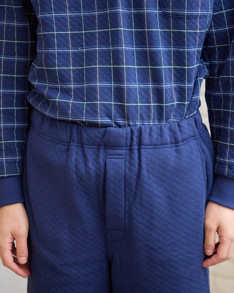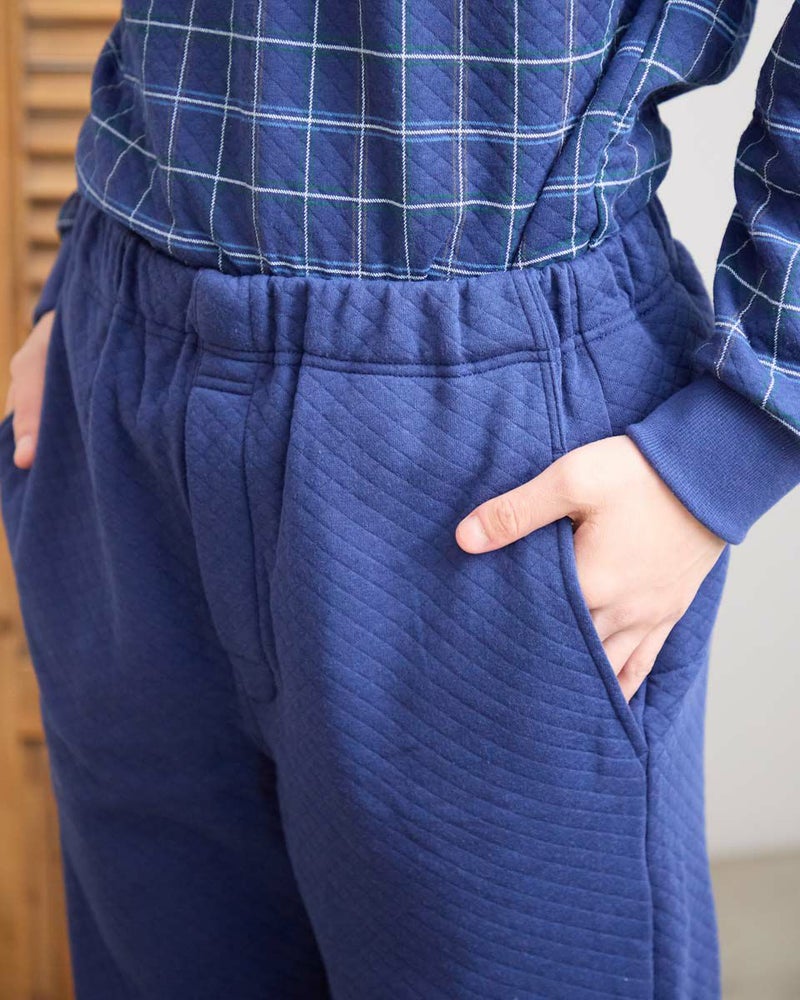 また、ボトムスは前開き・サイドポケットをつけています。ホームウェアとしても使えるこだわりの仕様です。