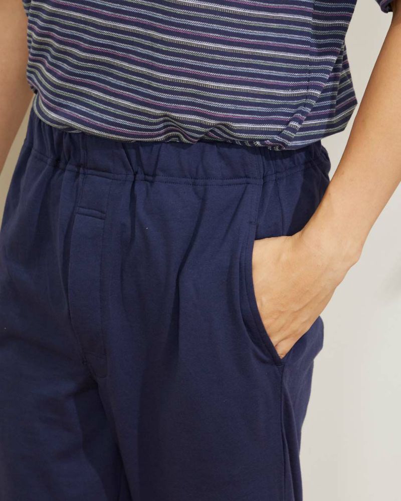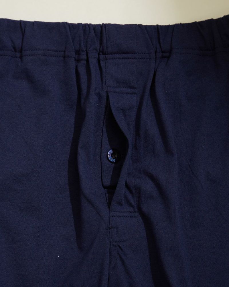 また、ボトムスは前開き・サイドポケットをつけています。ホームウェアとしても使えるこだわりの仕様です。