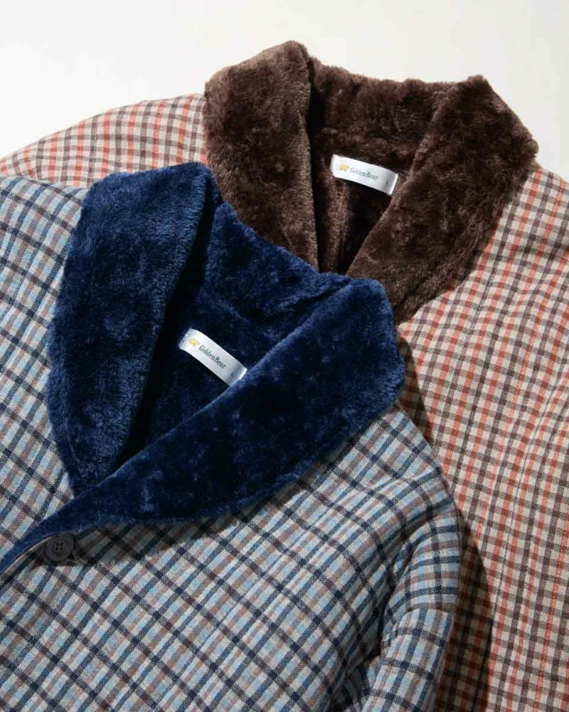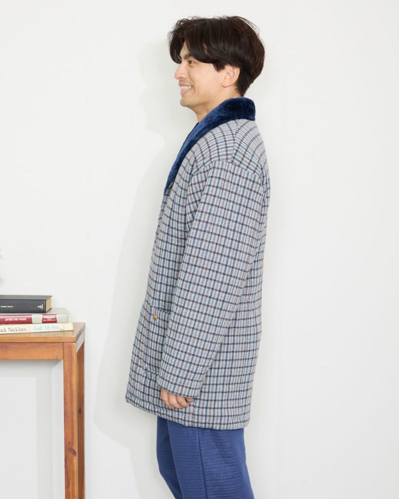 チェック柄の中綿入りジャケットです。柔らかなジャカード素材を使用しました。裏生地は、ボリュームのあるボア素材仕様で、暖かさと着心地の良さがおすすめです。肌寒い季節に羽織っていただける快適アイテムです。