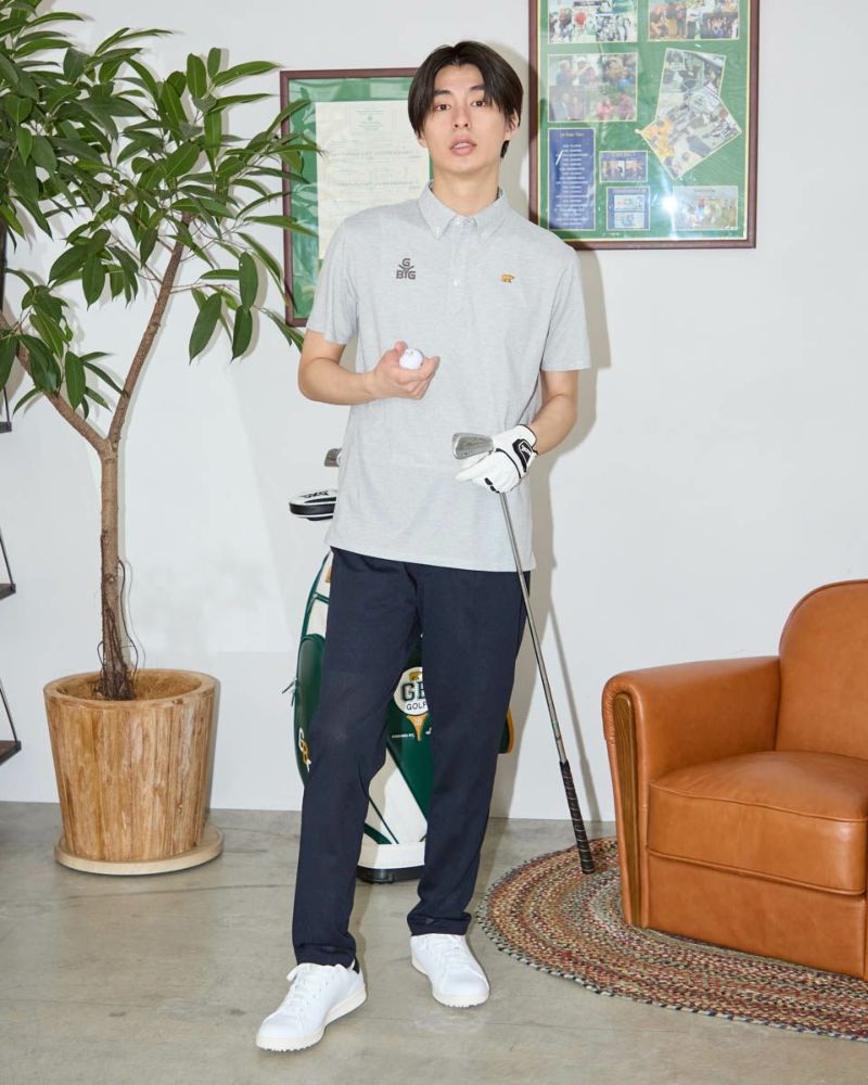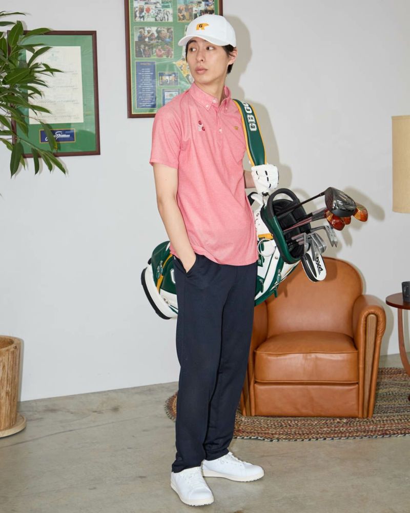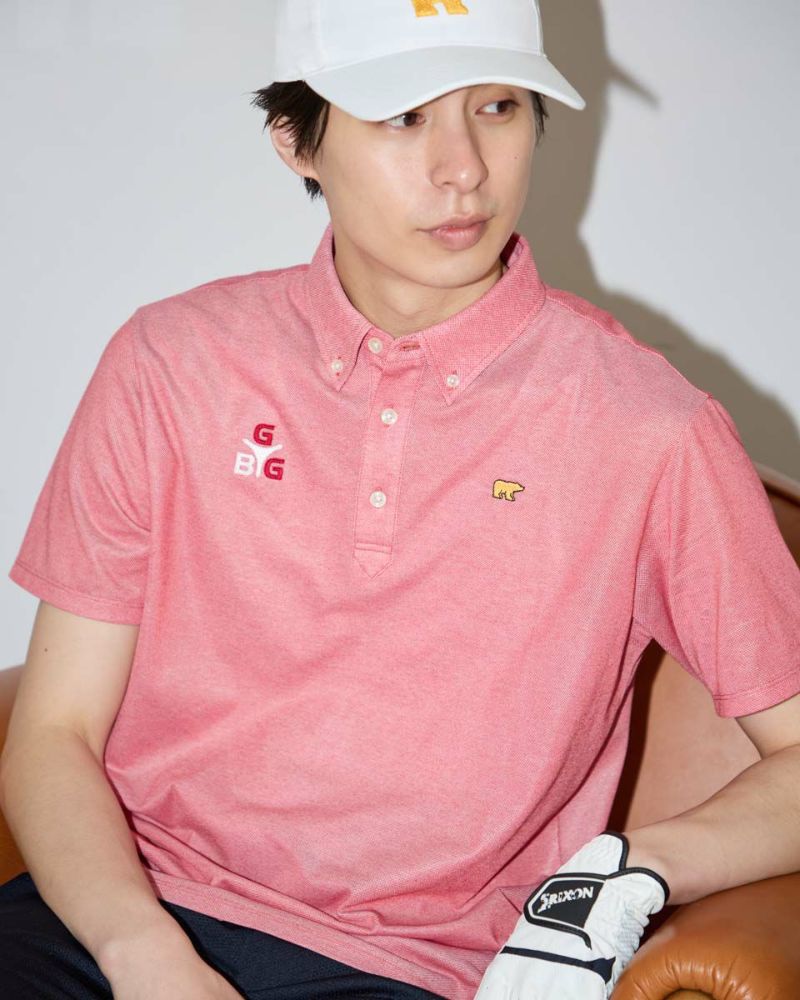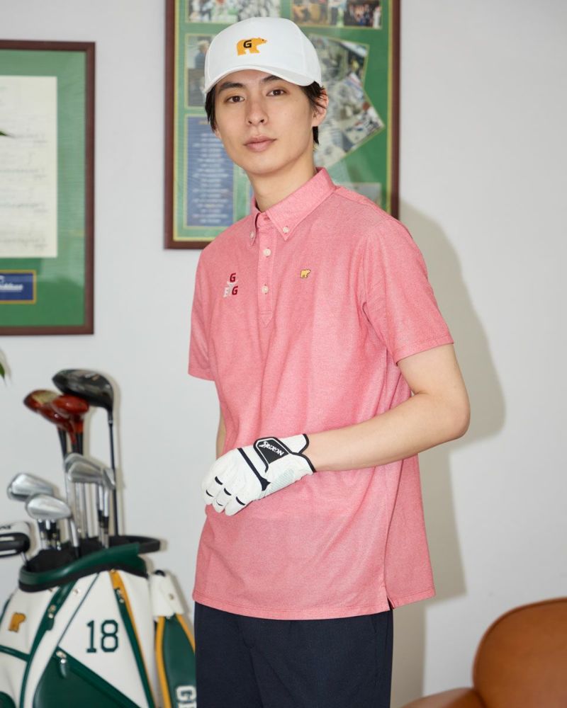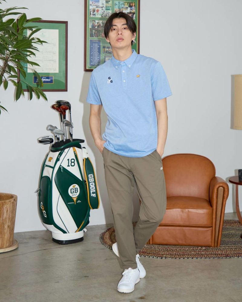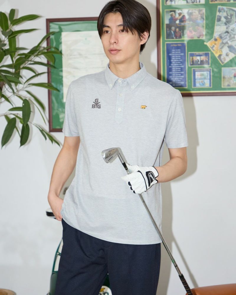 アクティブシーンにオススメな機能ポロシャツです。水分の吸収に優れ、汗を素早く吸い上げ蒸散する”クールマックス”を使用しています。涼しくドライな着心地が特長です。 モデル身長: 180 cm 着用サイズ: L サイズ GB GOLF カットソー (Men's) 【着用アイテム】312R7000 BEAR キャップ 312R7700 GBG パンツ