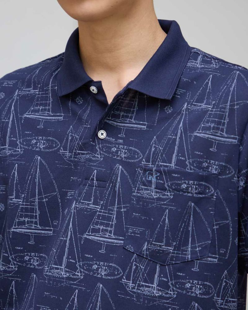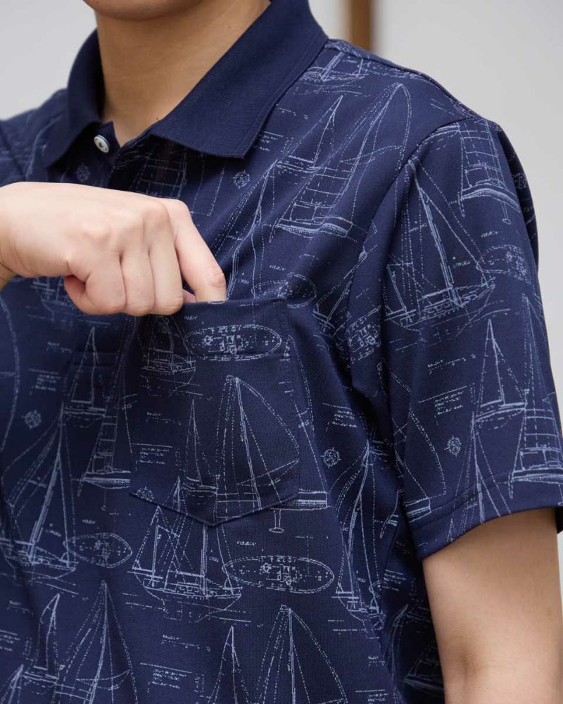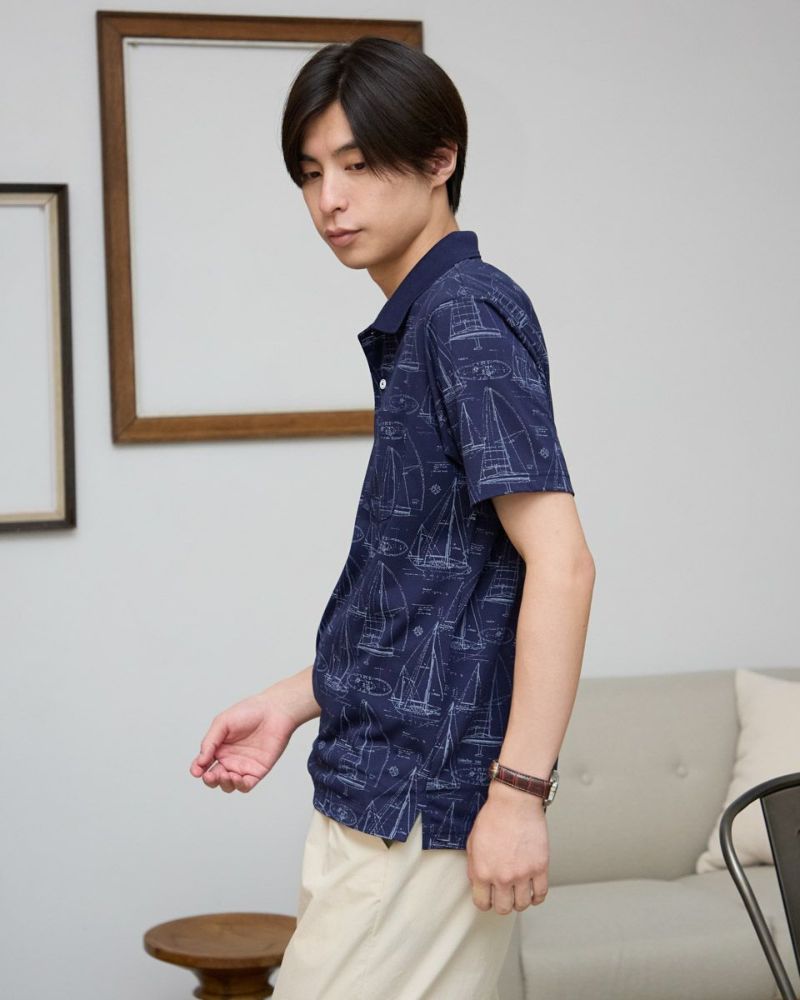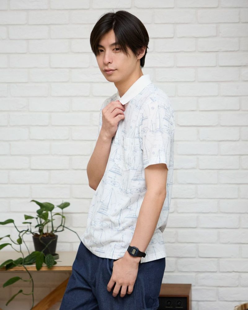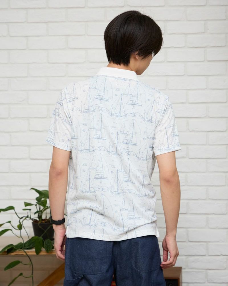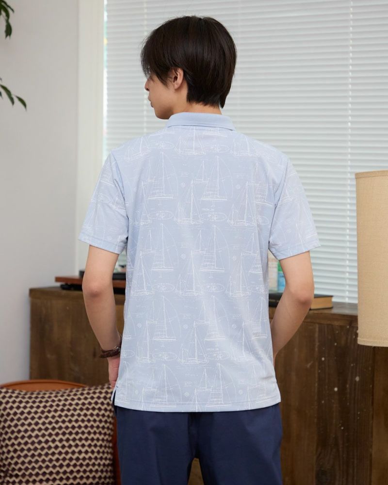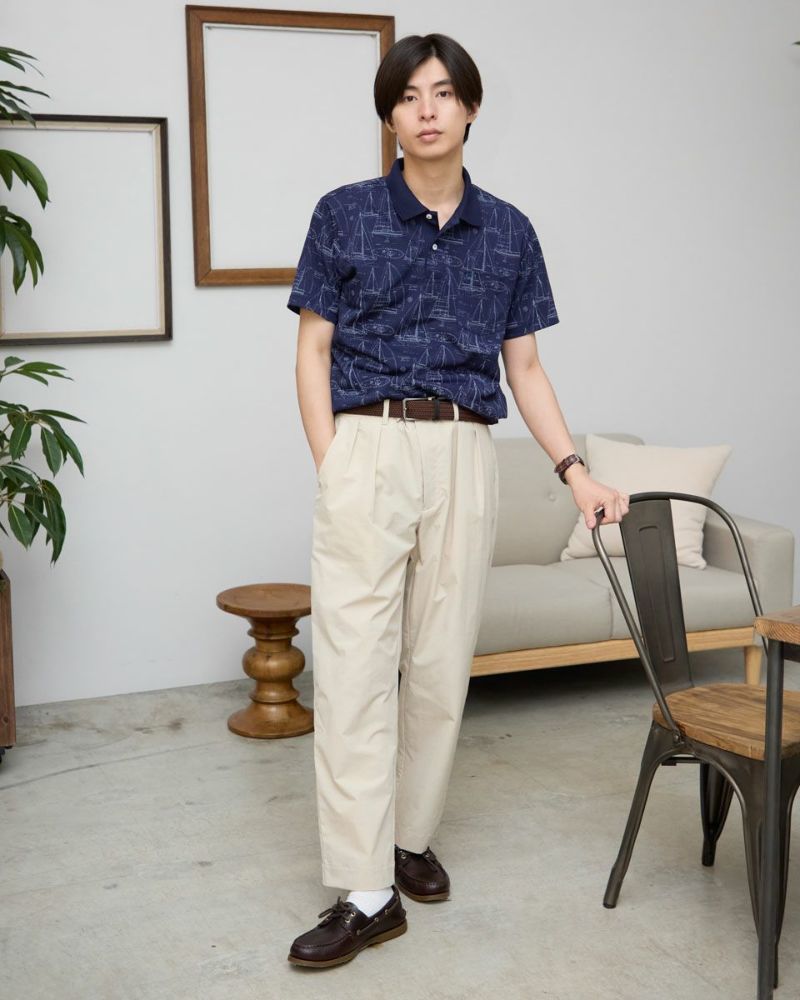 夏らしい海モチーフのプリントを施したポロシャツです。吸水速乾性に優れ、さらっとした着心地が特徴の鹿の子生地を使用しています。総柄プリントですが優しい配色で着回しのしやすさがポイントです。 モデル身長: 180 cm 着用サイズ: L サイズ Golden Bear Men's カットソー (Men's) 【着用アイテム】314R4730 超ストレッチパンツ 314R7710 ワイドイージーパンツ