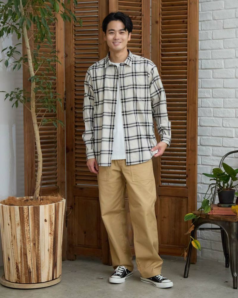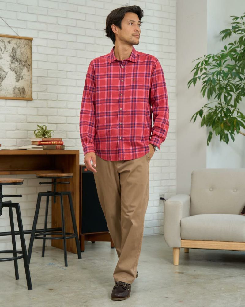 オーガニックコットン100%を甘く撚り合わせたチェックのレギュラー襟シャツです。両面に微起毛を施し、ふんわりとした柔らかな風合いに仕上げました。着心地のよさ、着回し力を兼ね備えた秋冬のワードローブに欠かせないシャツです。 モデル身長: 176・180 cm 着用サイズ: L サイズ Golden Bear Men's シャツ (Men's) レディースサイズはこちら 家族コーディネートアイテムはこちら