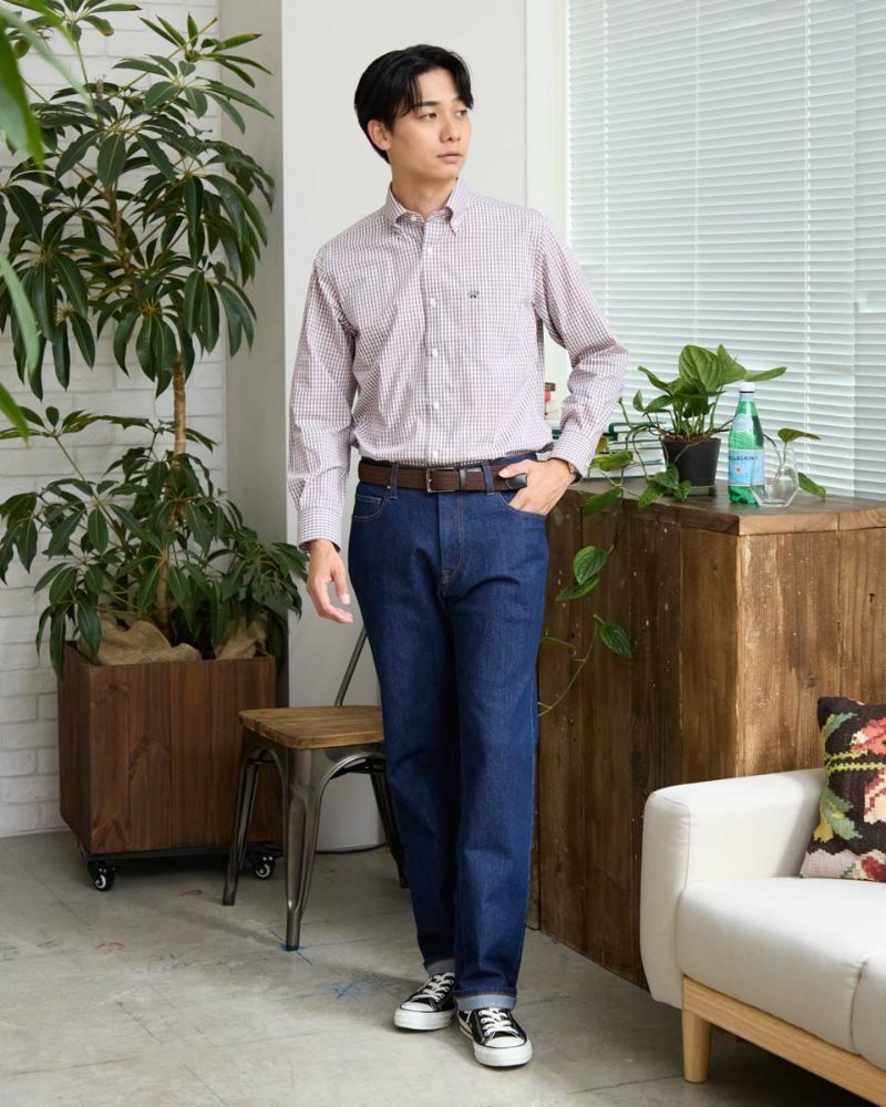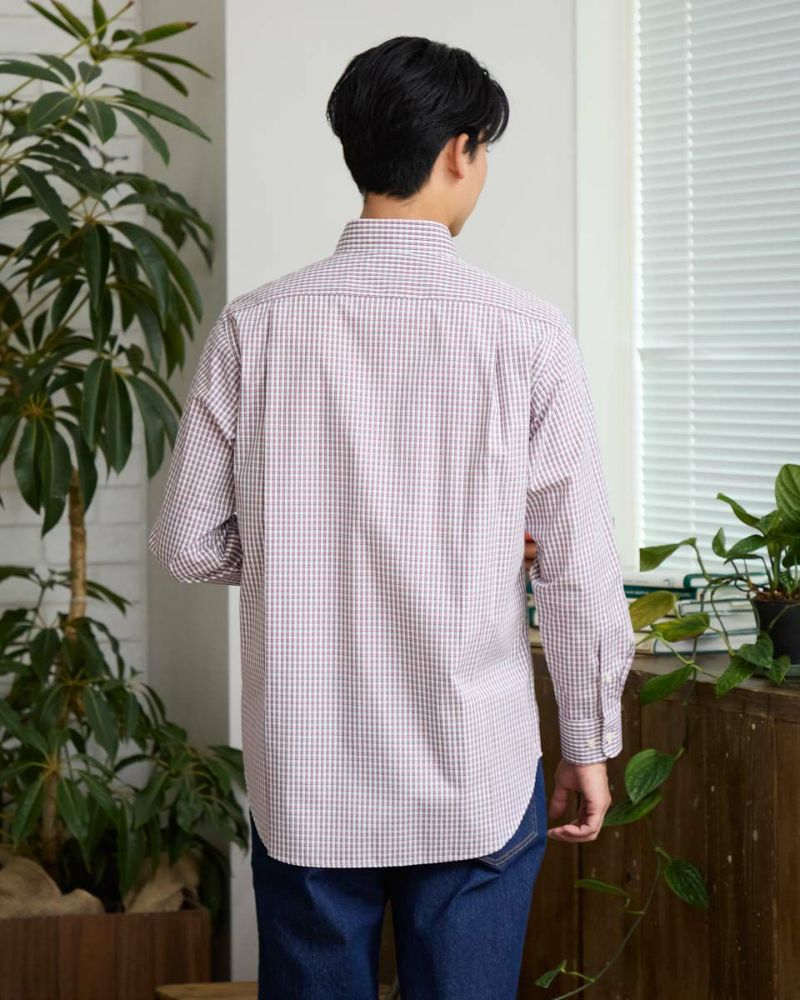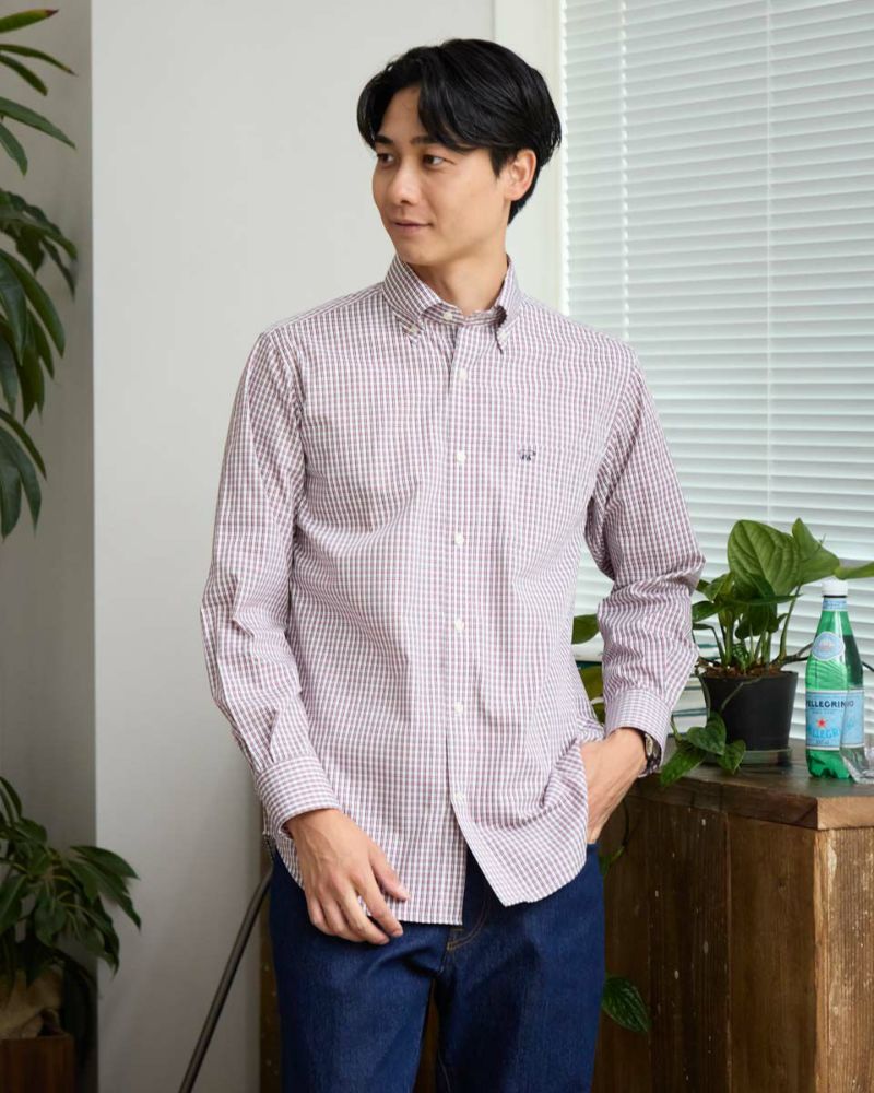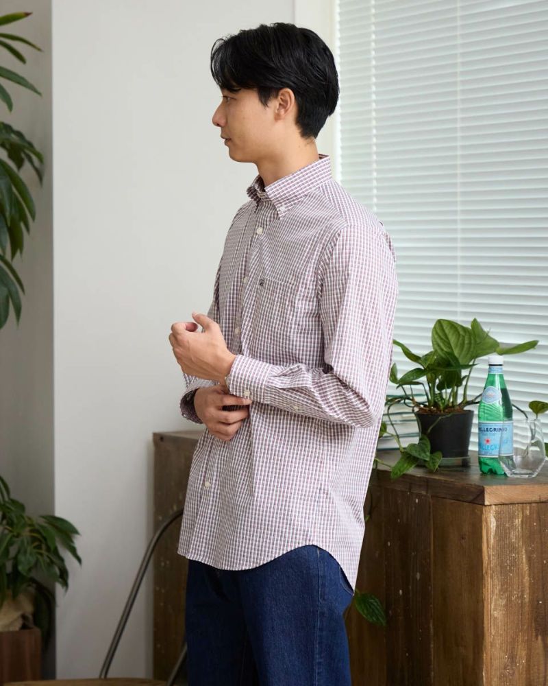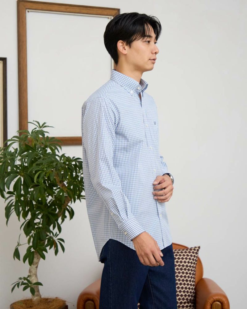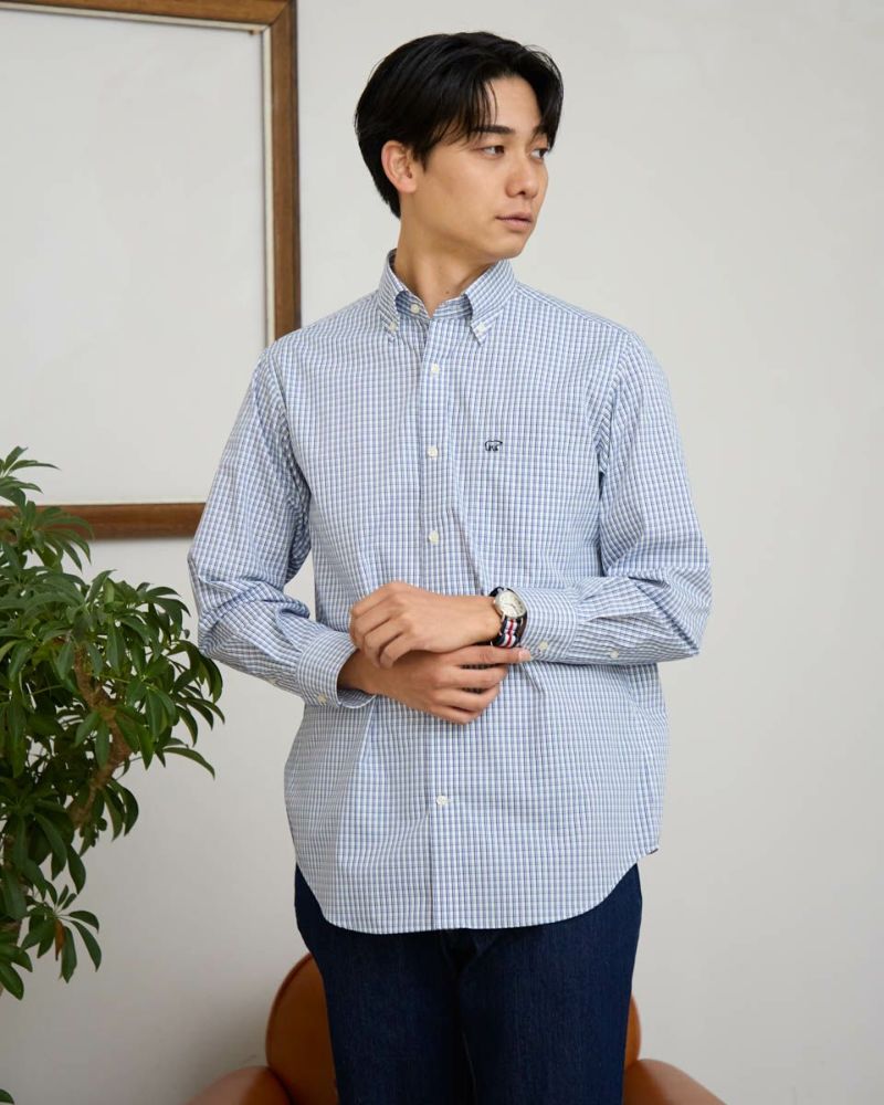 幅広いコーディネートに使いやすい細かいチェックのボ タンダウン襟シャツです。タテ方向の柄がはっきり立つように経糸を高密度に織っています。高密度に織ることで生地に適度なハリコシが出て上品な光沢感と風合いが特徴です。イージーケア加工をしているので、シワを気にせずに着用いただけます。 モデル身長: 180 cm 着用サイズ: L サイズ Jack Nicklaus (Men's) シャツ (Men's) 【着用アイテム】317RC102 ジャケット 314RC418 パーカ 314R8702 デニム