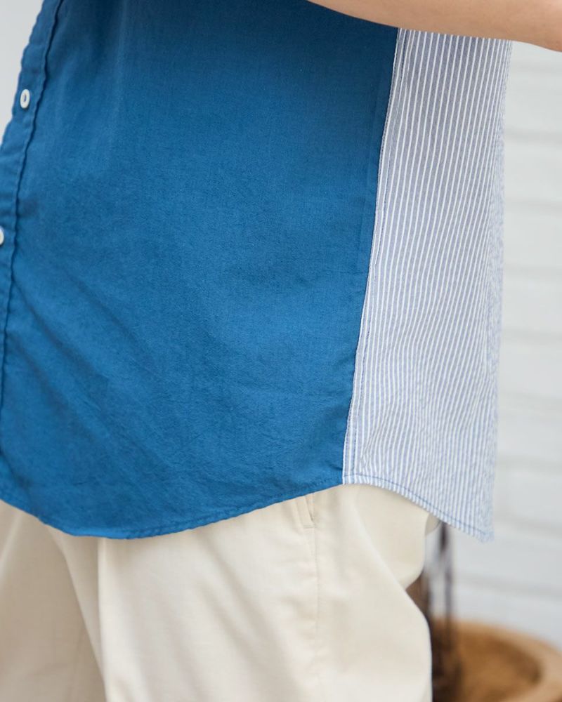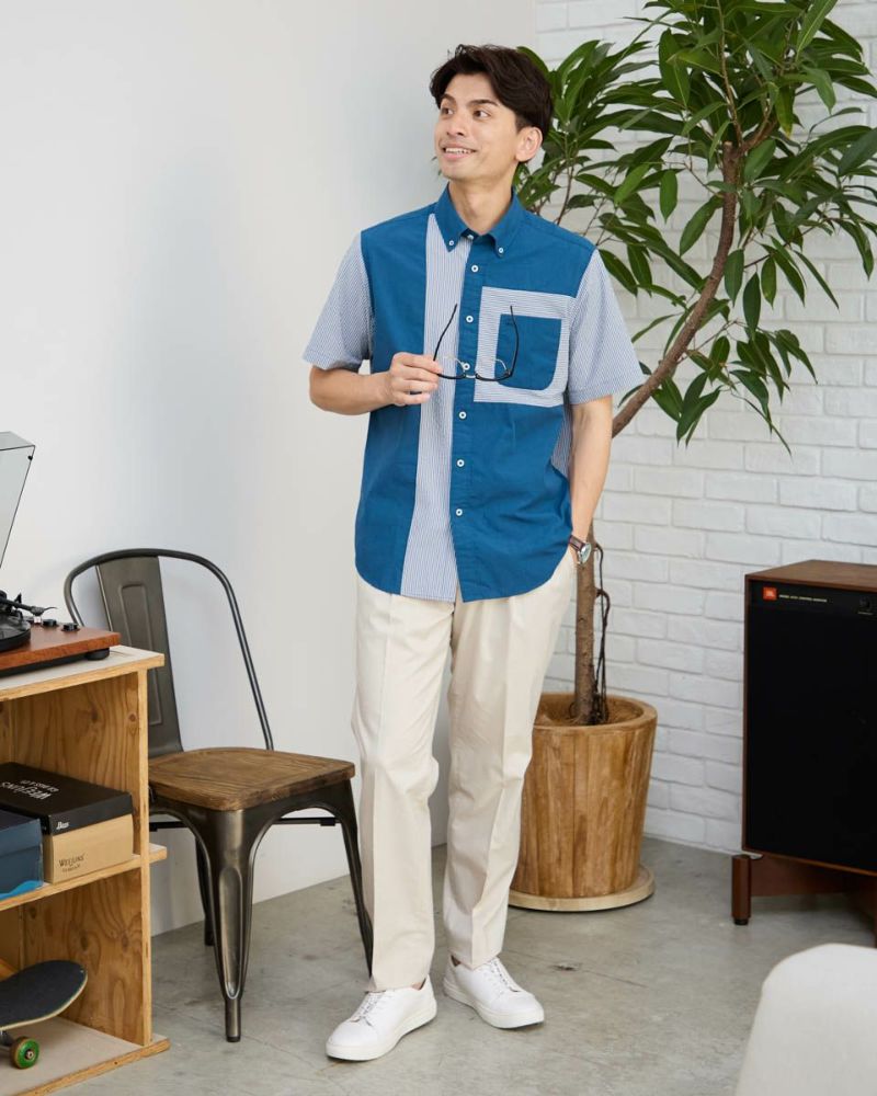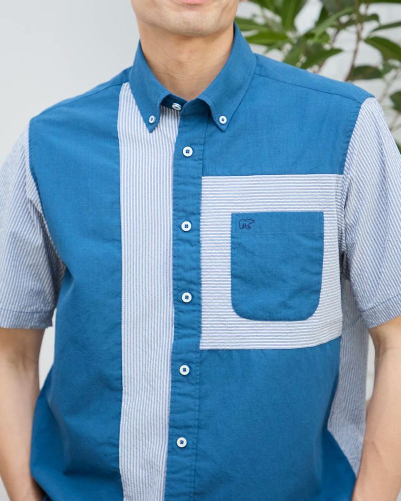 異なる生地を切替えたボタンダウン襟の半袖シャツです。 無地とストライプサッカー生地を切替え、表情のある雰囲気に仕上げました。 年齢問わずすっきりしたカジュアルスタイルを演出します。 モデル身長: 180 cm 着用サイズ: L サイズ Golden Bear Men's シャツ (Men's) 同デザイン大きい(3L,4Lサイズ)はこちら 【着用アイテム】314R5701 スラックス