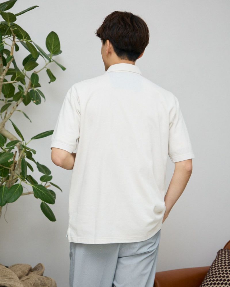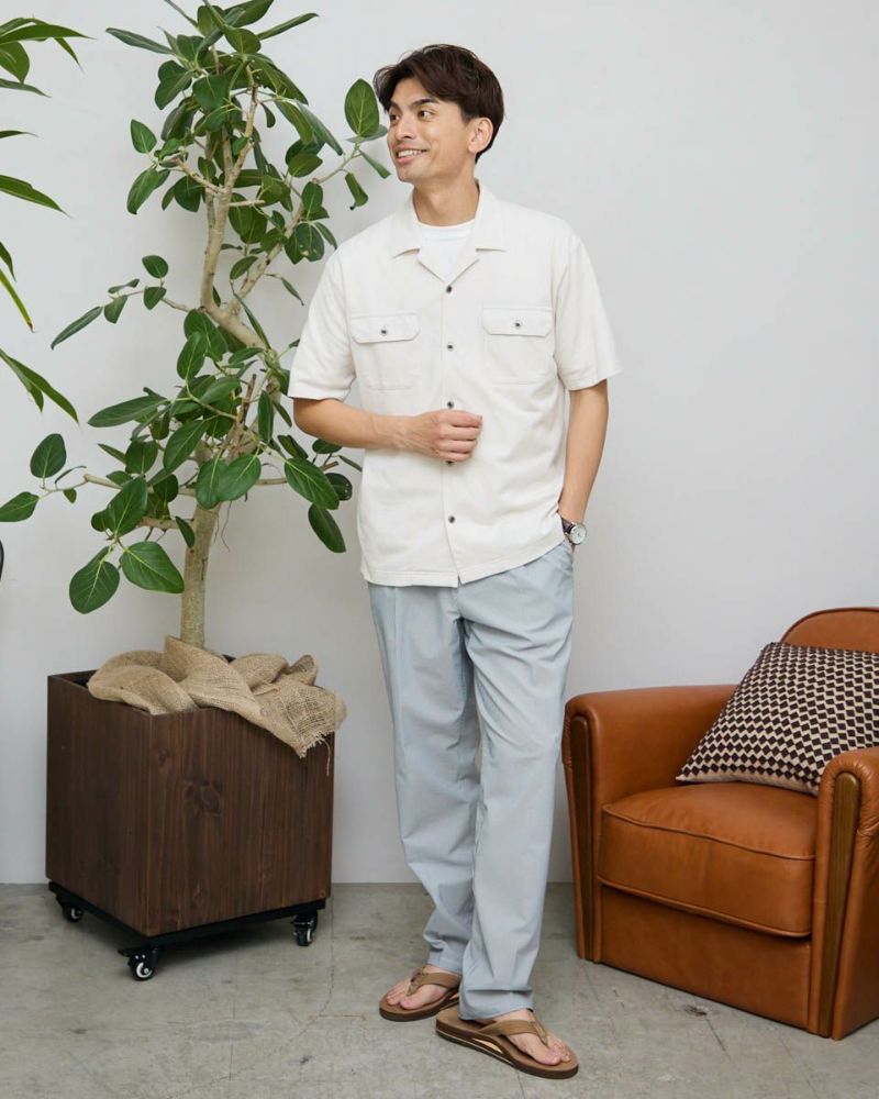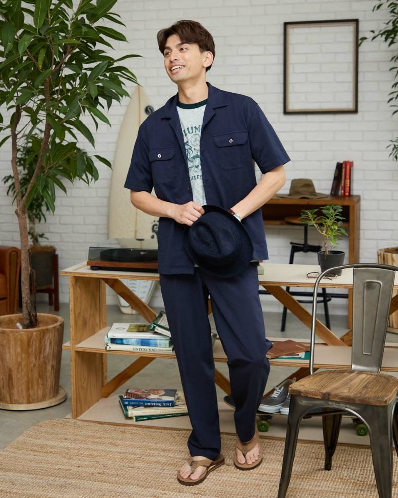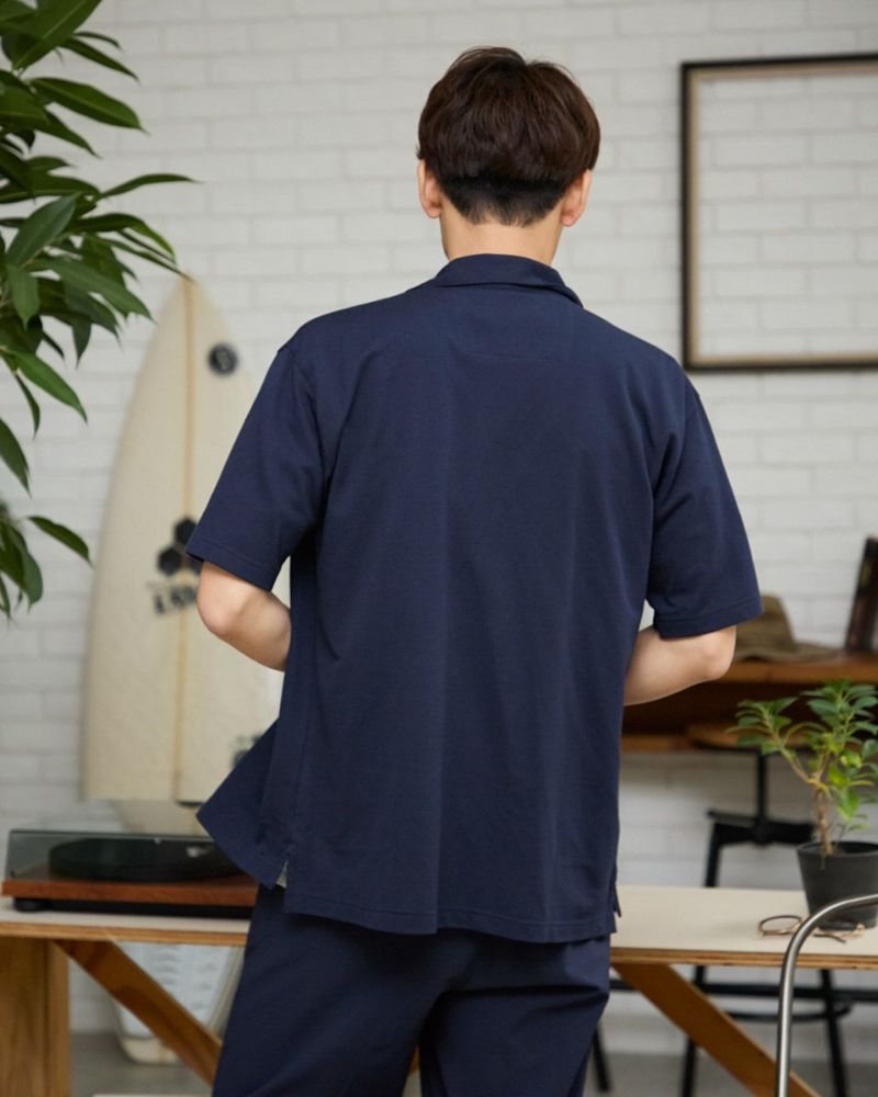 軽く羽織れる前開きの半袖シャツです。 吸水速乾性に優れたワッフル鹿の子生地を使用しています。胸のダブルポケットがアクセント。リラックスシルエットに仕上げました。カットソー生地の羽織りならではの着心地のよさがポイントです。