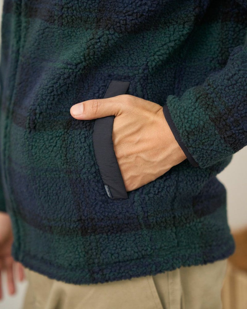 スタンドカラーのZIPブルゾンです。暖かみのあるシープボア素材を使用しています。大柄のチェックをプリントしトラッドな印象に仕上げました。アウターとして軽く羽織れる気軽さが魅力です。 モデル身長: 180 cm 着用サイズ: L サイズ Golden Bear MEN カットソー (MEN) 【着用アイテム】314QE672 モックネックニット 314QD611 クルーネックニット 314QE224 チェックシャツ 314Q3095 ニットタイ