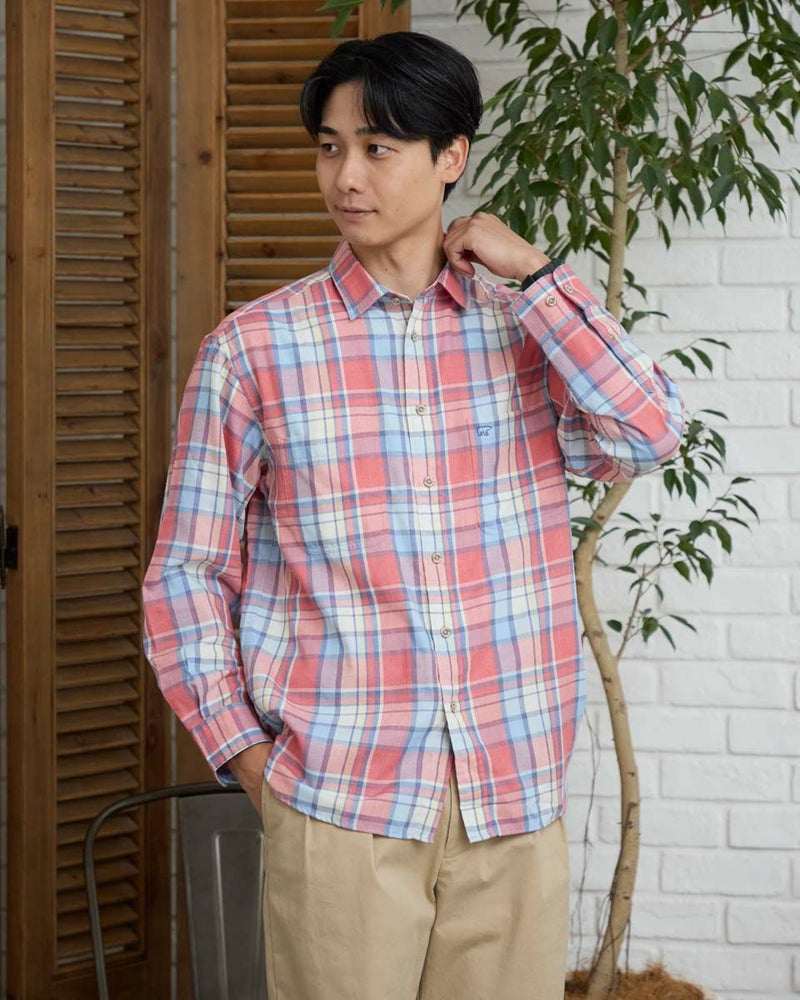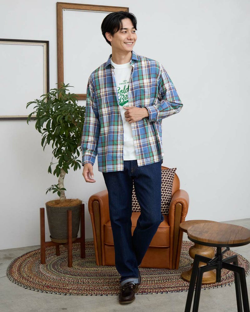 柔らかな色合いが特徴の大柄チェックシャツです。綿とポリエステルの混紡糸の綿側のみを染める片染という染色方法で色合いを表現。染まっていない白い部分が糸に残り、独特のフェード感を表現しました。ややゆったりとしたサイズ感でさっと羽織るようにカジュアルに着こなすのがおすすめです。 モデル身長: 180 cm 着用サイズ: L サイズ Golden Bear MEN シャツ (MEN) ウィメンズサイズはこちら 家族コーディネートアイテムはこちら 【着用アイテム】314RC100 スイングトップ 314R8453 長袖ポロシャツ 314RC431 ロゴ長袖Tシャツ 314R8702 デニム 314RC700 ワイドチノ