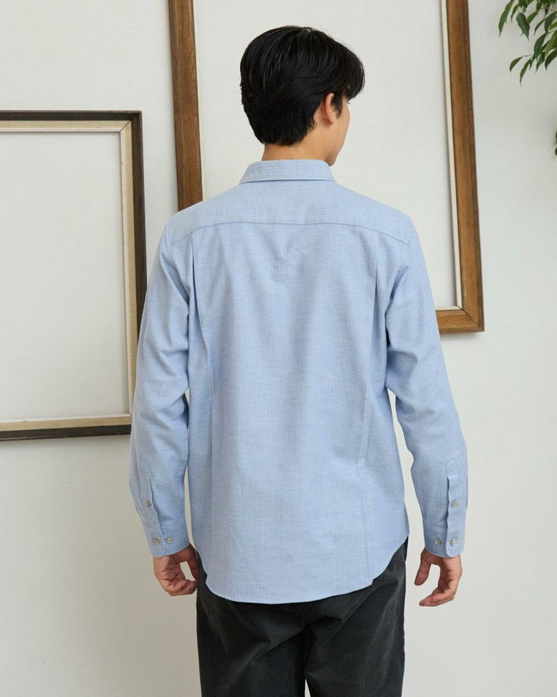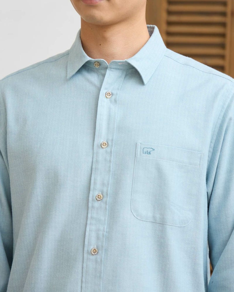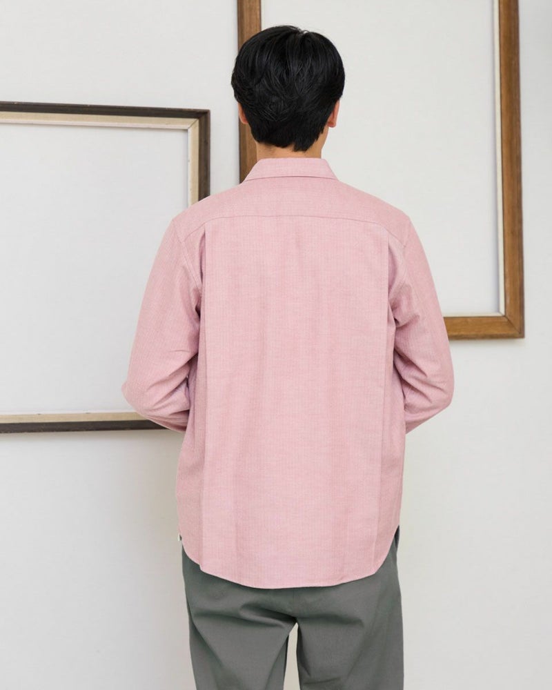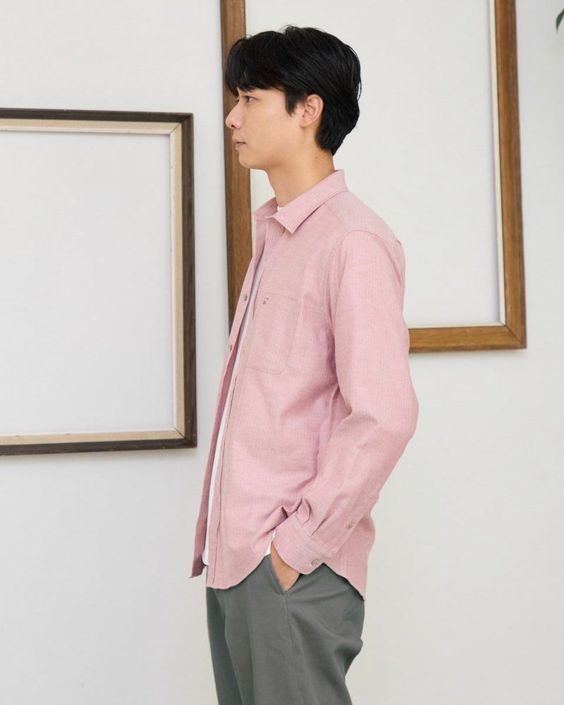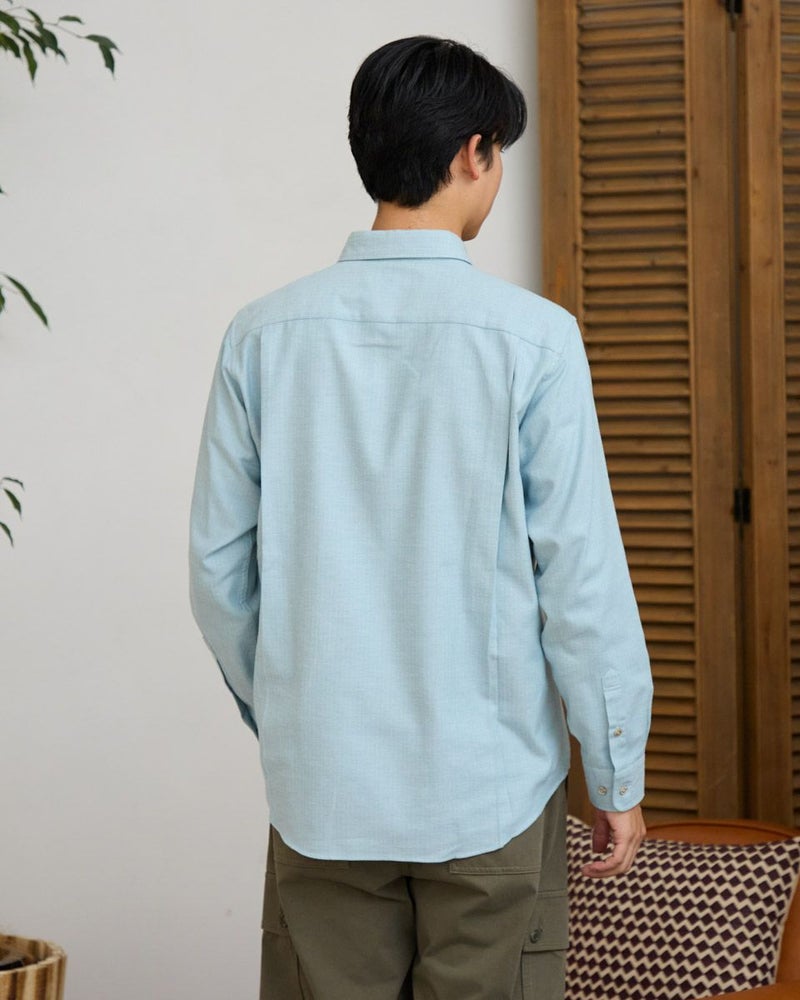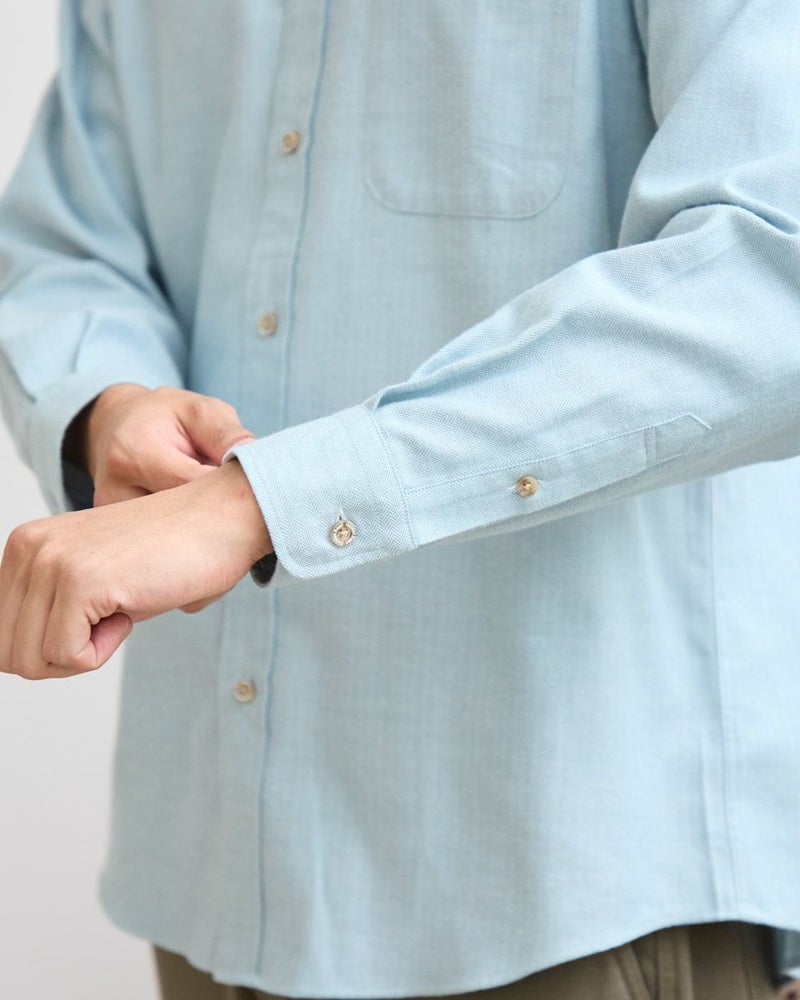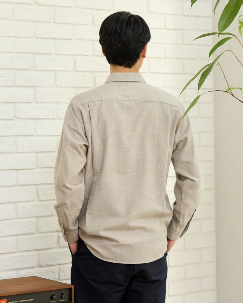 ヘリンボーン柄のレギュラー襟シャツです。起毛を施した暖かさと柔らかな風合いに加え、お手入れが簡単なイージーケア加工を施しています。クラシカルで上品な印象を与える落ち着きのある柄で様々なコーディネートに合わせやすさが魅力です。秋から冬にかけてのワードローブにぜひオススメしたい便利な一枚です。 モデル身長: 180 cm 着用サイズ: L サイズ Golden Bear MEN シャツ (MEN) 【着用アイテム】314RE123 キルトジャケット 314RE720 カーゴパンツ 314RE721 ストレッチコーデュロイパンツ