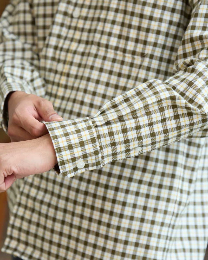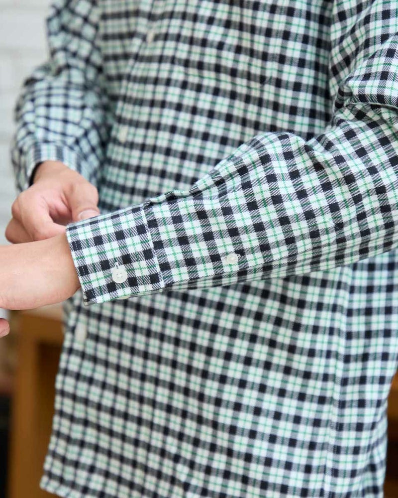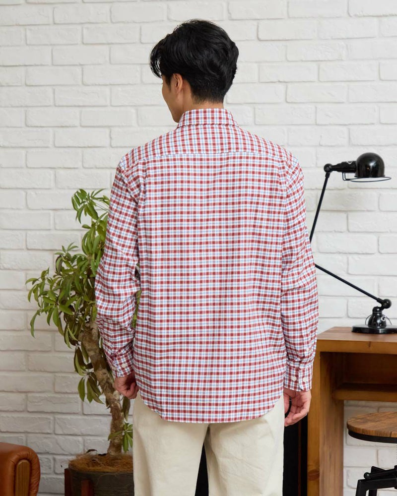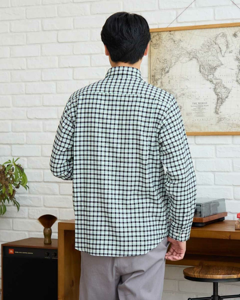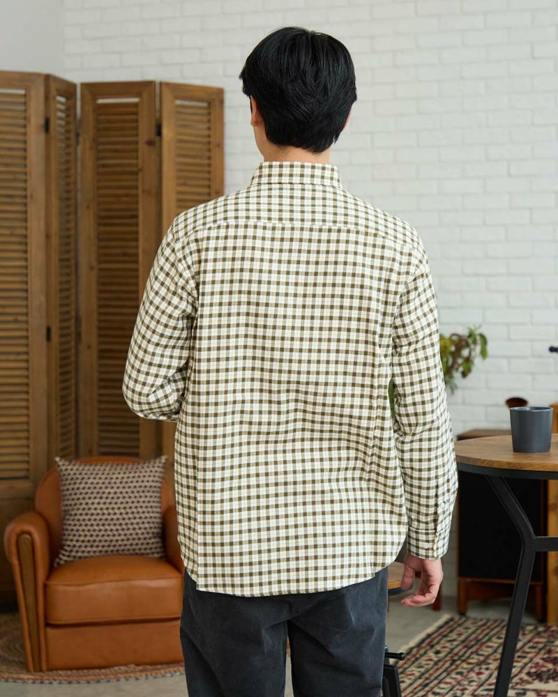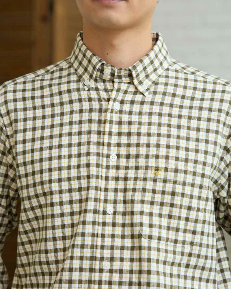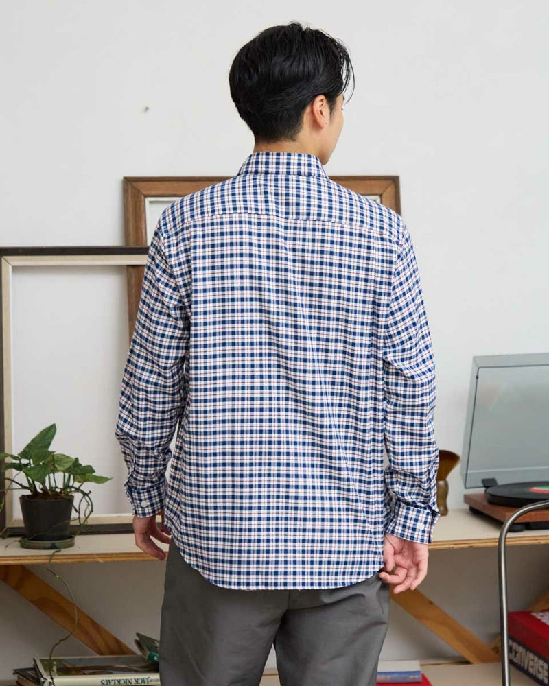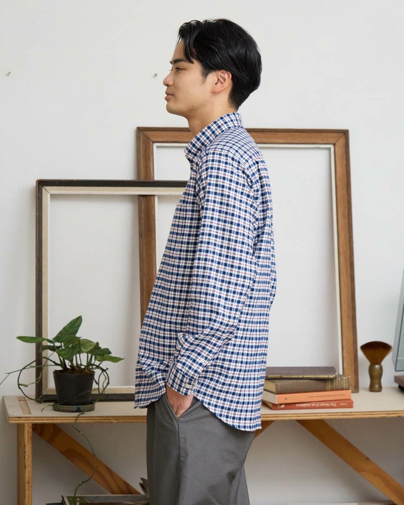 ビエラチェックのボタンダウン襟シャツです。起毛を施した暖かさと柔らかな風合いに加え、お手入れが簡単なイージーケア加工を施しています。コーディネートしやすい白ベースの中柄チェックは着用シーンや年代を問わず使いやすいシャツです。 180/176 cm 着用サイズ: L サイズ Golden Bear MEN シャツ (MEN) 【着用アイテム】314RE124 マウンテンパーカ 314RD409 ボアベスト 314RE633 洗えるラムカーディガン 314RE721 ストレッチコーデュロイパンツ 314RE722 ストレッチスリムイージーパンツ