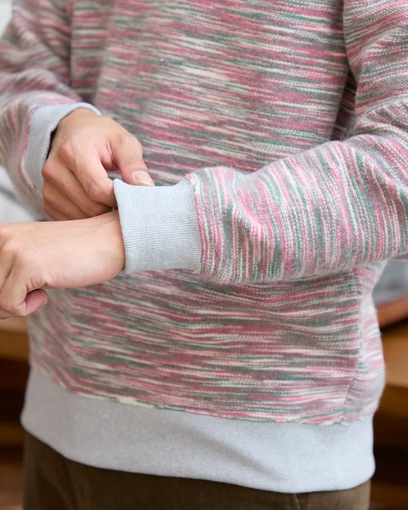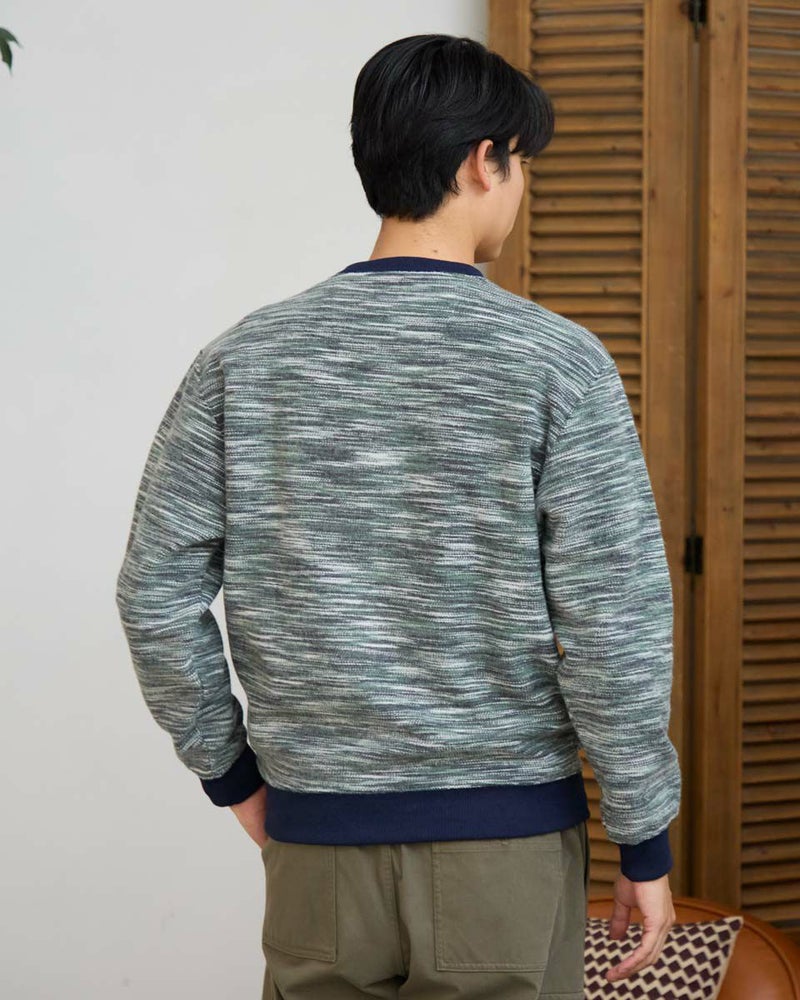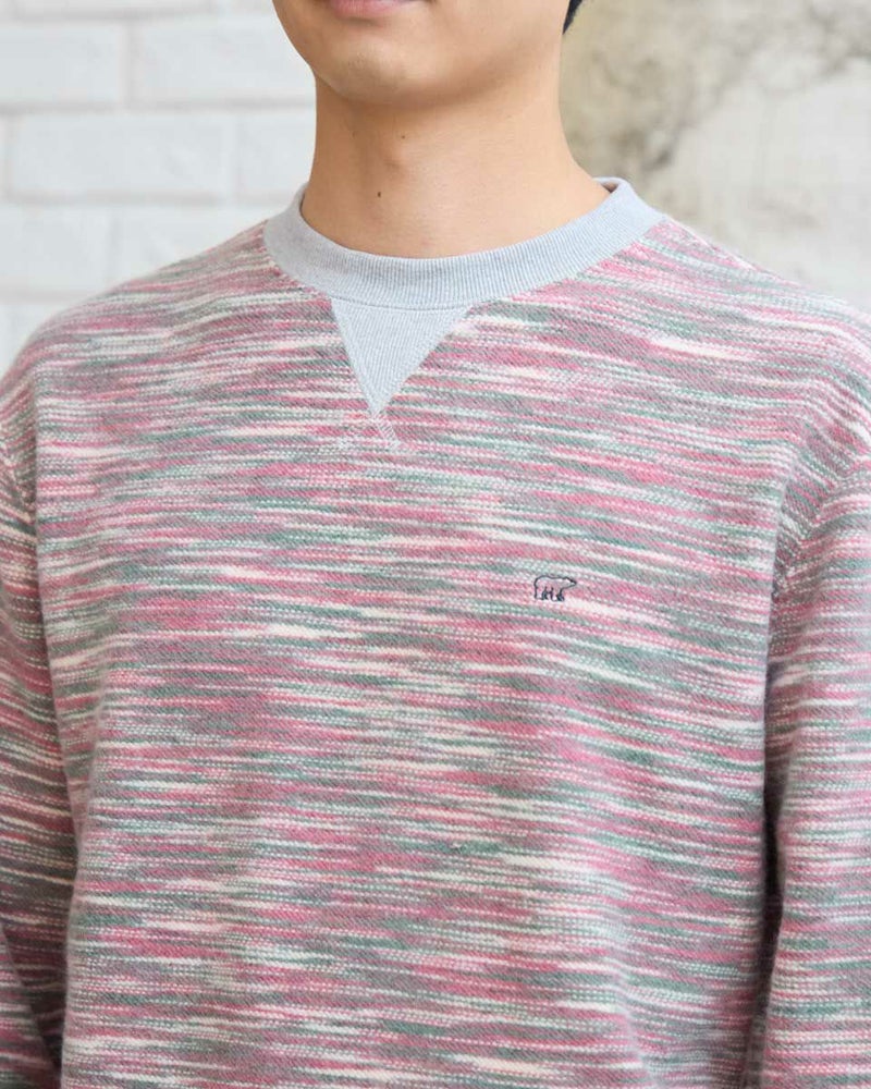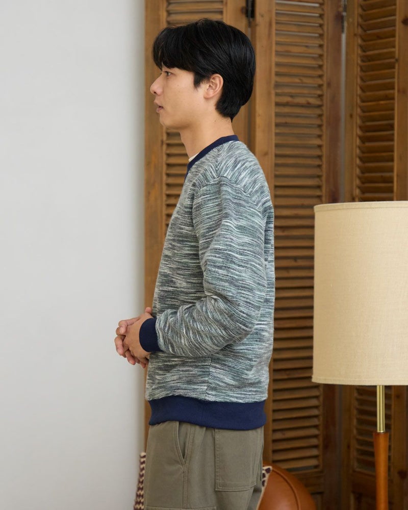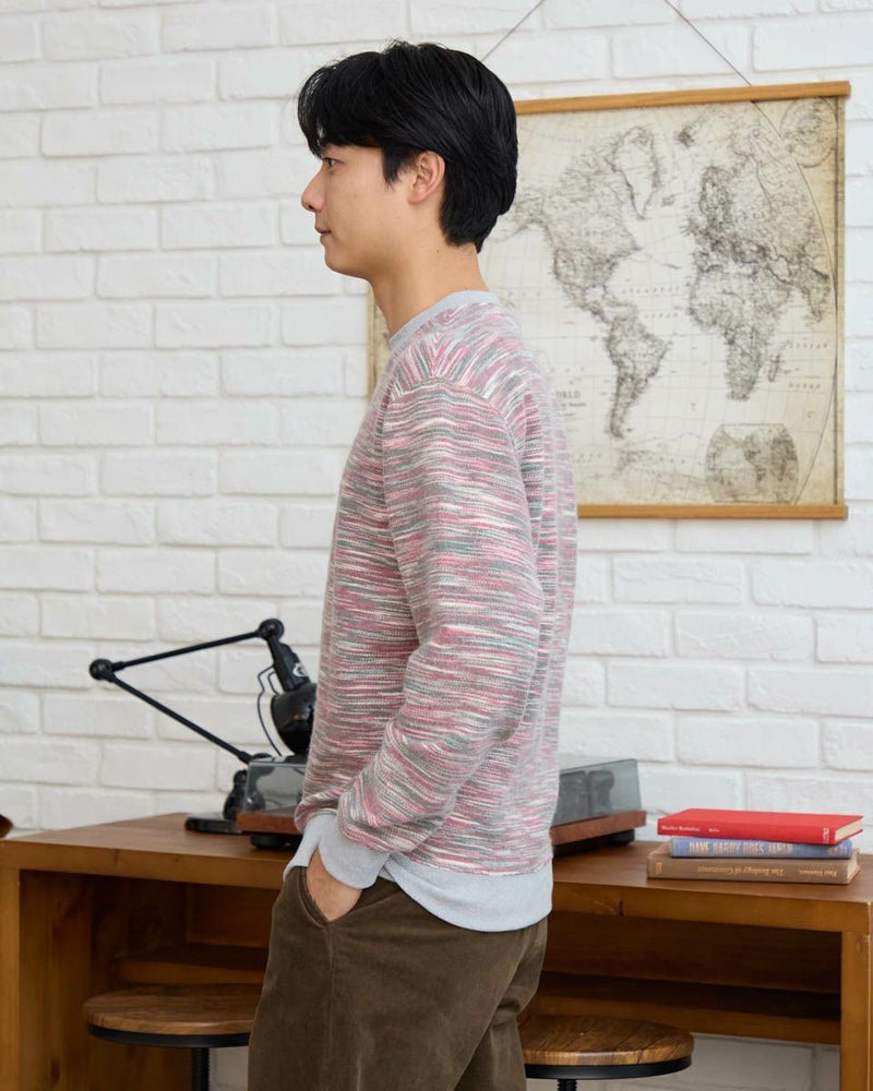同系色のカラー糸を使用したかすり裏毛スウェットです。カラー糸の独特の表情をお楽しみください。暗くなりがちな冬のコーディネートのアクセントにオススメです。 モデル身長: 180 cm 着用サイズ: L サイズ Golden Bear MEN カットソー (MEN) 【着用アイテム】314RE720 カーゴパンツ 314RE721 ストレッチコーデュロイパンツ