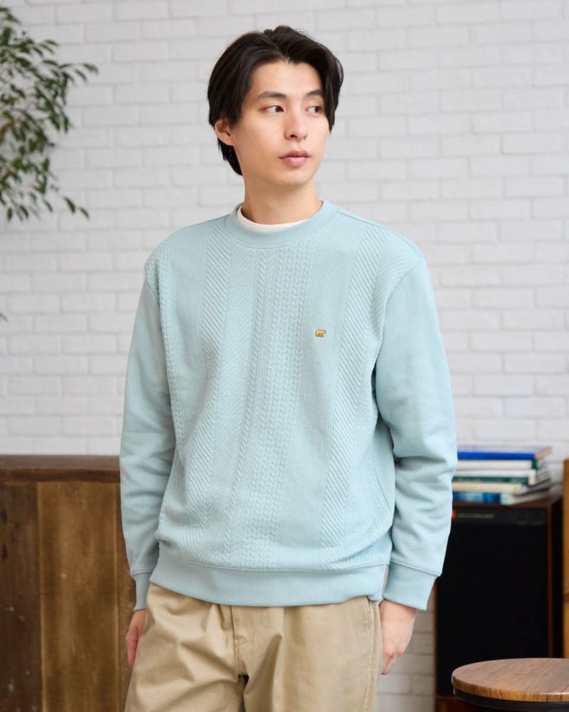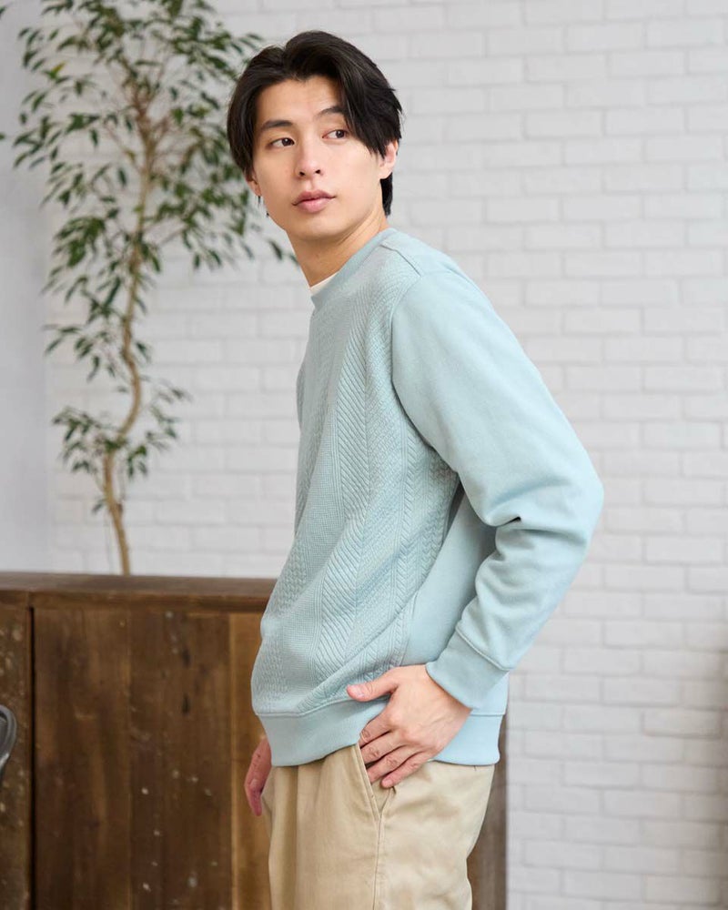 立体的な組織で切り替えたスウェットです。前身頃は立体感のあるフクレジャカード生地、後身頃・袖はダンボールニット生地を使用しています。ストライプ調の縦柄がシャープな印象で上品なスタイリングを演出します。 モデル身長: 180 cm 着用サイズ: L サイズ Golden Bear MEN カットソー (MEN) 【着用アイテム】314RE171 ダウンコート 314RC700 ストレッチワイドチノ 314RC704 ストレッチイージーパンツ