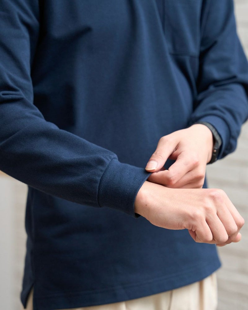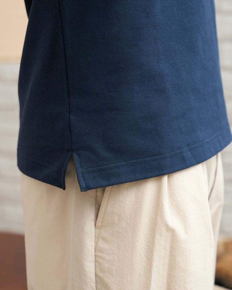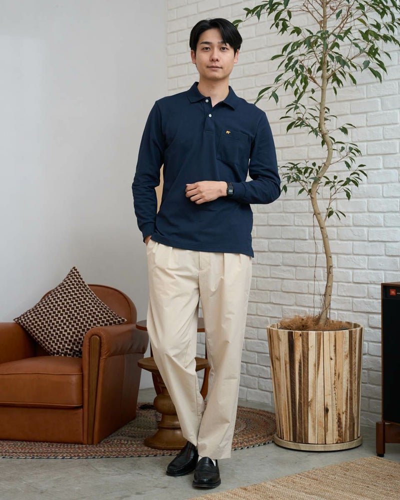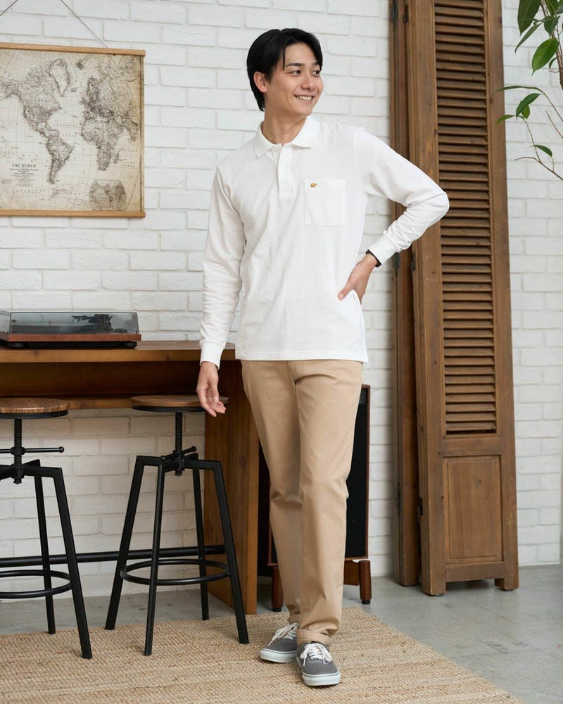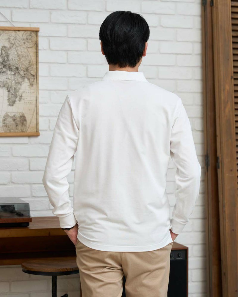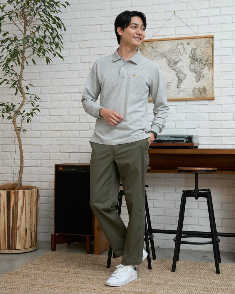 ゴールデンベアのシンボル、金熊の刺繍を胸元にあしらった、長く愛される定番長袖ポロシャツです。通気性と吸水速乾性に優れた鹿の子生地は、汗ばむ季節もサラリと快適。制菌加工をしているので、気になる汗や部屋干しの臭いも心配いりません。レギュラーシルエットで、どんなボトムスとも合わせやすい万能さも魅力。ダブルフェイスのリブ襟は、洗濯してもヨレにくい工夫が施されており、いつまでも美しい襟元をキープします。洗練された大人の定番。色褪せない品格ポロシャツです。