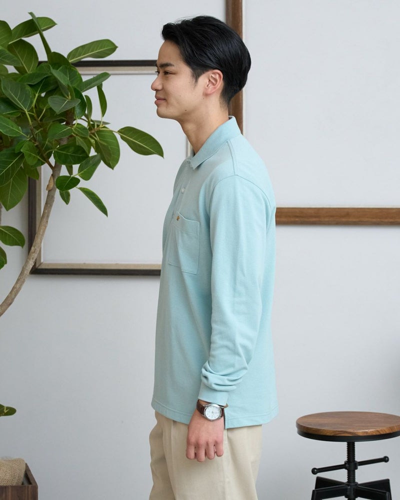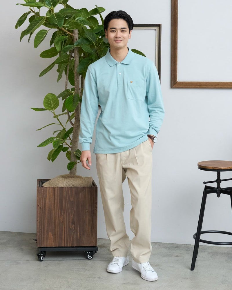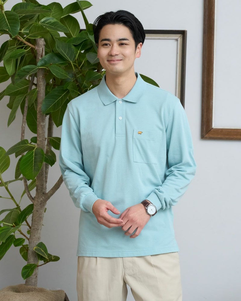 金熊を胸ポケットに刺繍した定番の無地ポロシャツです。通気性と吸水速乾性に優れた鹿の子生地を使用し、快適に着ていただけます。制菌加工をしているので、気になる汗や部屋干しの臭いも心配いりません。レギュラーシルエットで、あらゆるボトムスと合わせ易い無地ポロシャツです。ポロシャツを洗濯したら襟が丸まった・・・なんてこと、ありますよね?私たちGoldenBearの無地ポロシャツはダブルフェイスのリブ襟を採用し、洗濯しても襟がヨレにくく長持ちします。