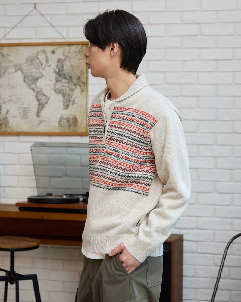 ニットとカットソーを切替えたハーフZIPスウェットです。前身頃はフェアアイル柄をジャカードで編み立てたニット素材。袖・後身頃はフリース素材を使用しています。家庭洗濯が可能でお手入れのしやすさがポイントです。 ※本製品は、柔らかな風合いの素材を使用しているため、ご着用時の摩擦により毛玉(ピリング)が発生する場合がございます。 素材の特性上、完全に防ぐことは難しい現象ですが、一日着用したら休ませる、ブラッシングをする等のケアをしていただくことで、より長く綺麗な状態でご愛用いただけます。もし、毛玉が出来ましたら、引っ張らず、ハサミなどでカットしていただくことをおすすめします。 モデル身長: 180 cm 着用サイズ: L サイズ 同デザイン通常サイズはこちら Golden Bear KING SIZE(MEN 大きいサイズ) カットソー (MEN) 【着用アイテム】314RC230 オックスシャツ 314RD412 ヘンリーネックTシャツ 315RC704 ストレッチイージーパンツ 314RE720 カーゴパンツ