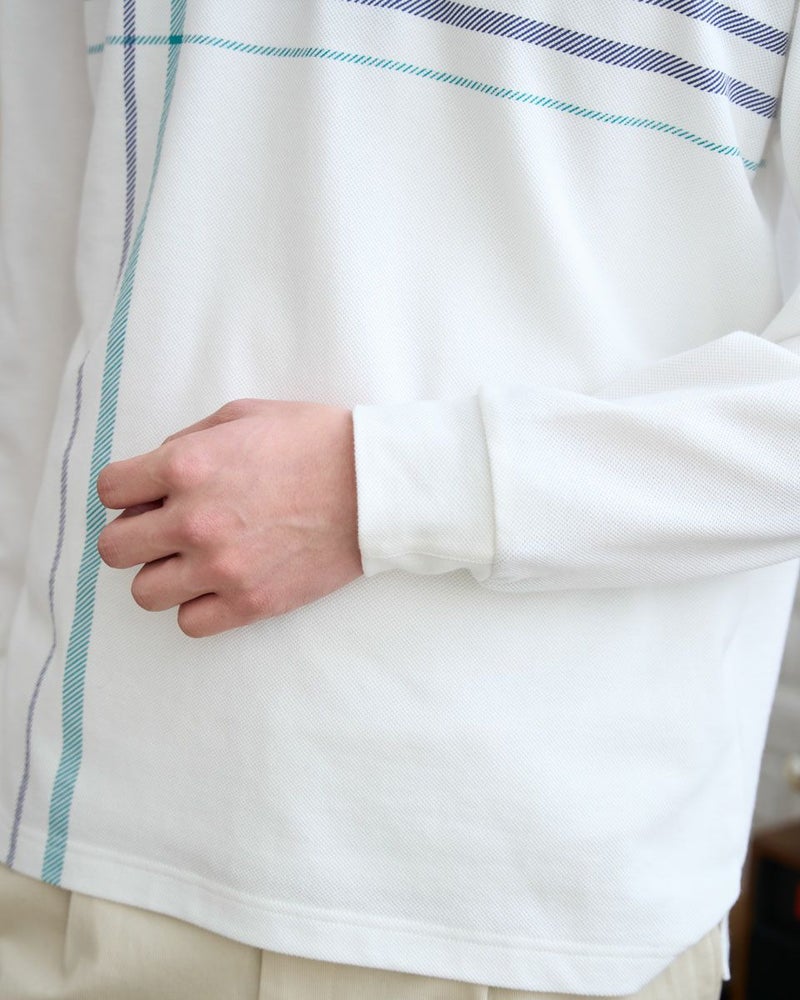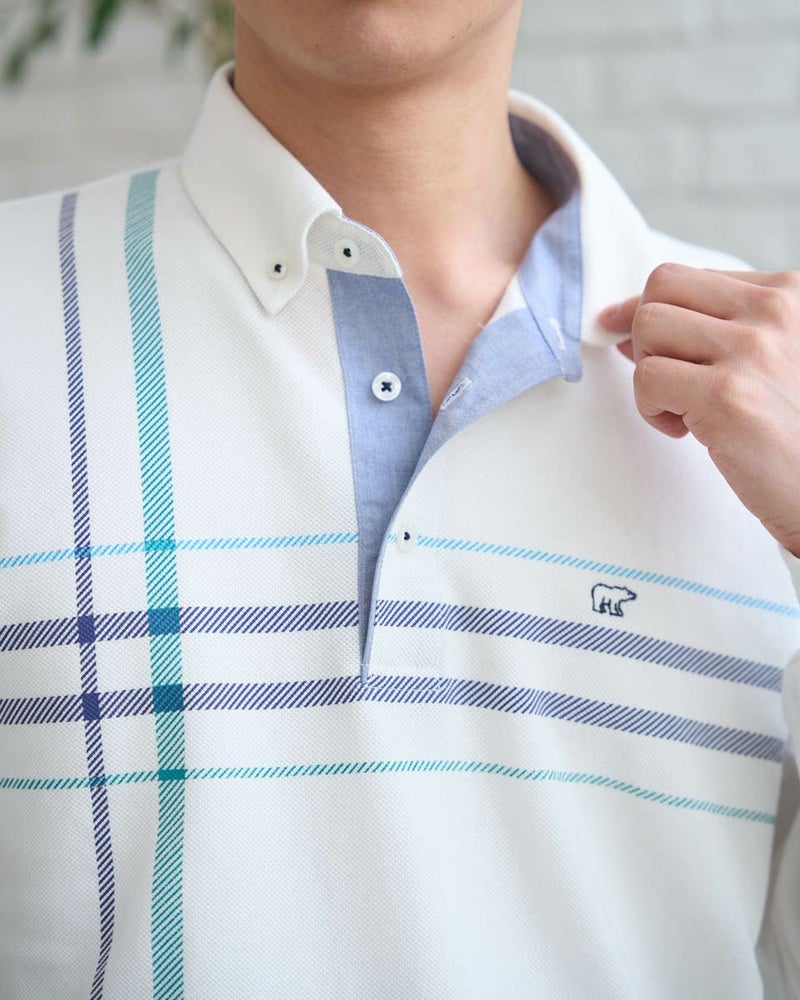 一目で心をつかむ、ダイナミックな大柄チェックを纏った主役級ポロシャツ。 あえて大ぶりなパターンを採用することで、トラッドなチェック柄にモダンでスポーティーな躍動感を与えました。見た目のインパクトだけでなく、過酷な季節を快適に過ごすために採用された変形鹿の子生地は、凹凸組織により肌との接触面積を最小限に抑え、ベタつきを軽減。さらに、優れた吸水速乾性が汗を素早く逃がし、常にドライで清涼感あふれる肌触りをキープ。機能美を追求するアクティブ派も納得の、極上の着心地を実現しています。