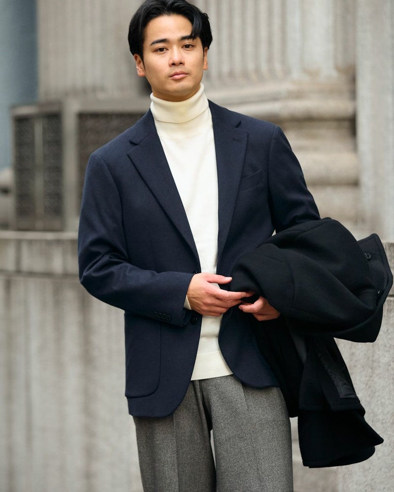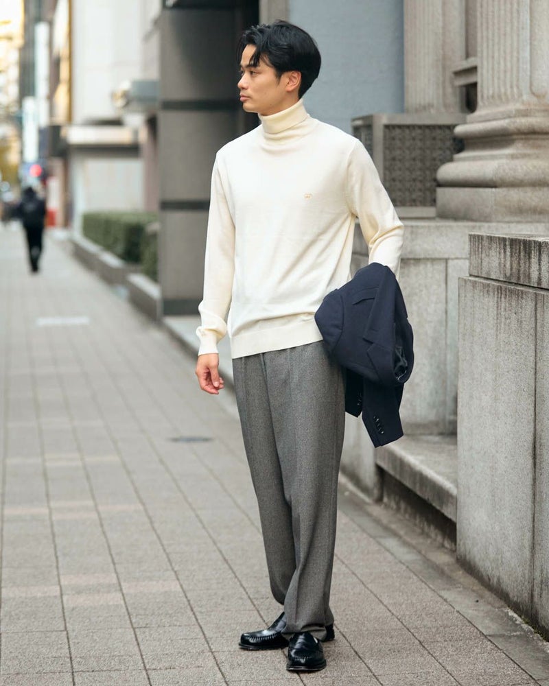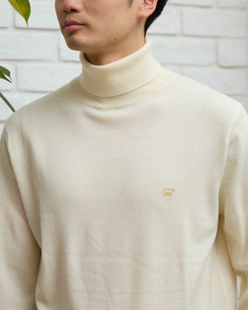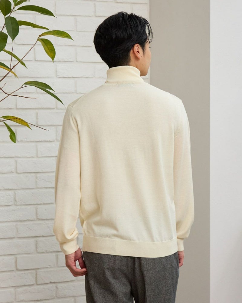 ウール100%の梳毛糸を使い14G天竺で編みたてたタートルネックニットです。家庭洗濯(手洗い)が可能で、毛玉のできにくさが特徴です。ジャケットに合うようサイズとシルエットにこだわりました。インナーとして一枚あると重宝するニットです。 モデル身長: 176 cm 着用サイズ: L サイズ Jack Nicklaus (MEN) ニット (MEN) 【着用アイテム】317RC102 ジャケット 317RD110 ジャケット 317RE130 Pコート 317RD710 イージースラックス 314RE721 ストレッチコーデュロイパンツ