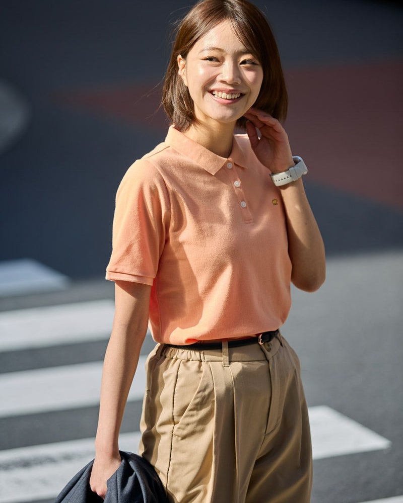 吸水速乾に加えて制菌加工を施した機能的なカノコ素材のベーシックなポロシャツです。袖口はリブを使用したデザインです。胸の金熊刺繍がポイントです。 モデル身長: 167/168 cm 着用サイズ: M サイズ Golden Bear WOMEN カットソー (WOMEN) メンズサイズ(品番314U3550)はこちら メンズサイズ(品番314U3551)はこちら 家族コーディネートアイテムはこちら 【着用アイテム】467U3711 ストレッチタックパンツ 467U3702 ストレッチテーパードパンツ 471U2101 金釦テーラードジャケット