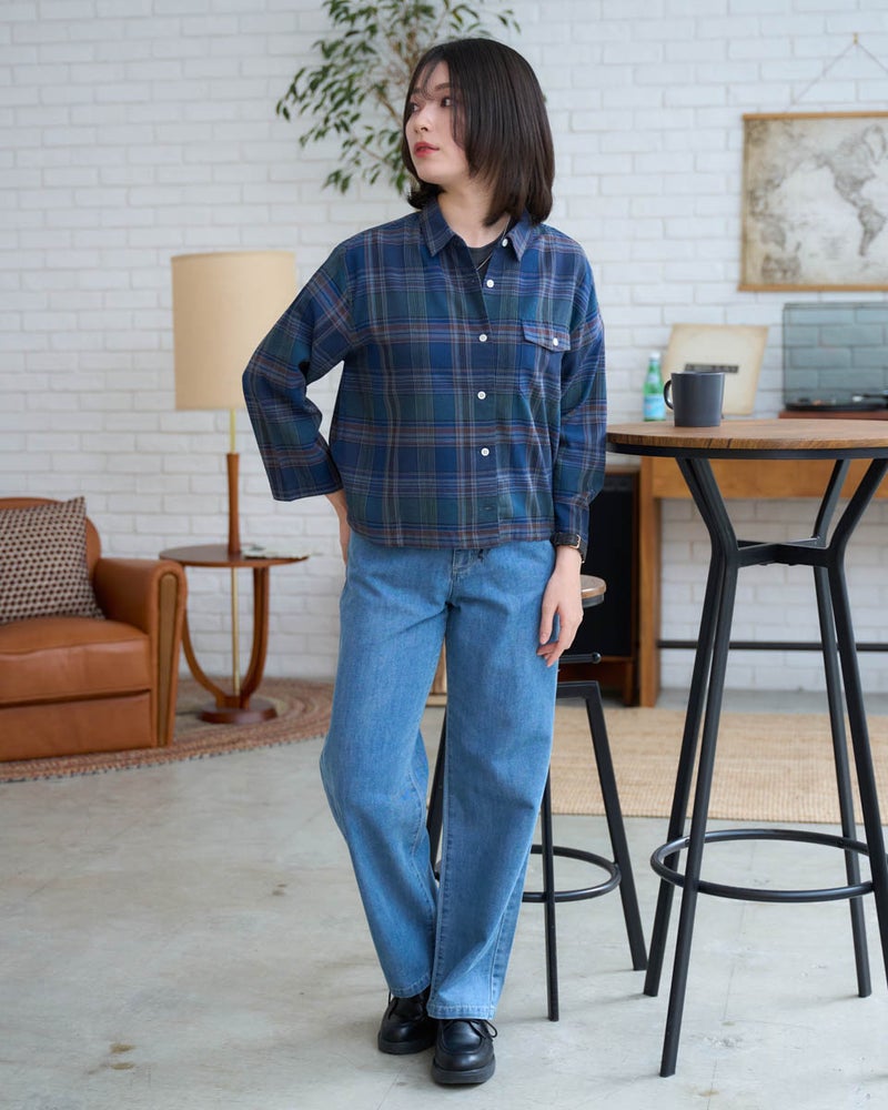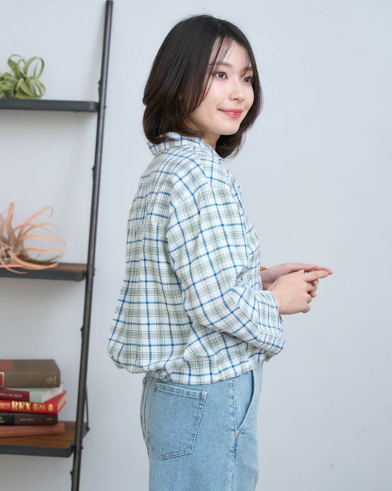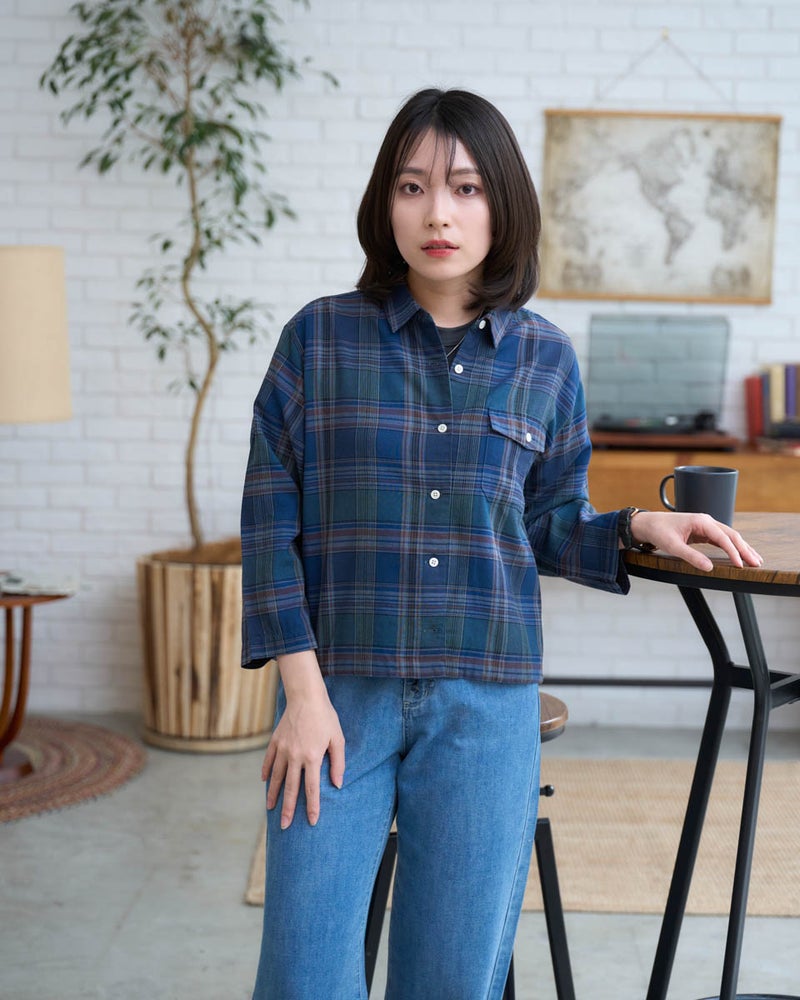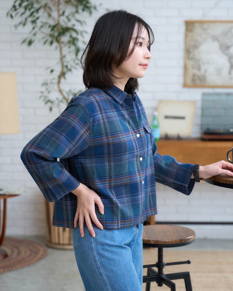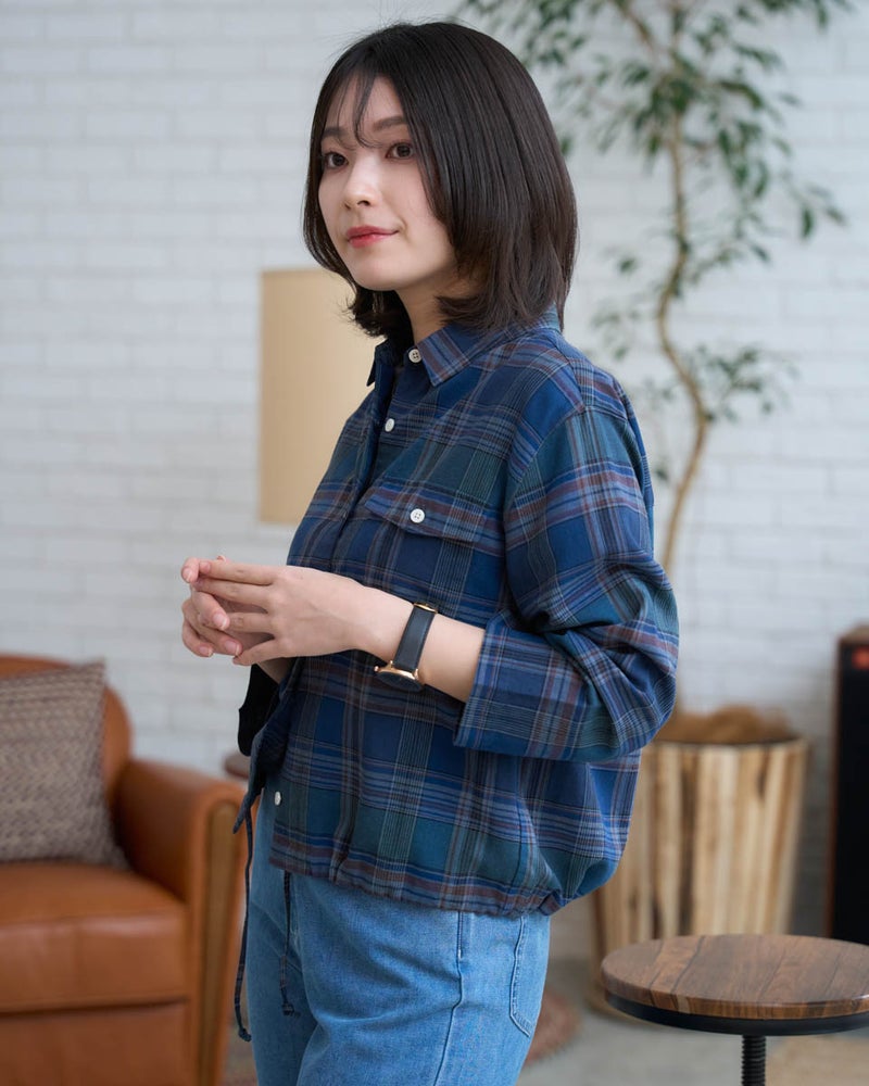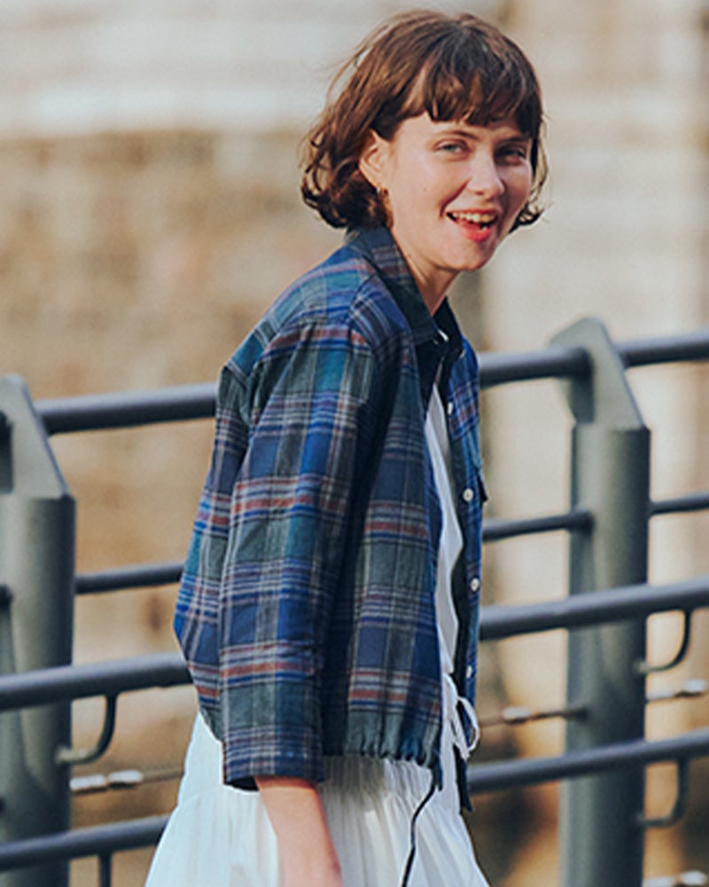 今の気分にぴったりな、軽やかな丈感のショートシャツです。 腰回りがスッキリと見えるコンパクトシルエットにこだわりました。素材は肌離れが良く、さらりとした麻混素材。ボトムスを選ばない丈感なので、自然と脚長効果が生まれます。一枚でキリッと着るのはもちろん、羽織りとして使えば、春夏の冷房対策にも重宝します。毎日の着こなしが楽しくなる一枚です。