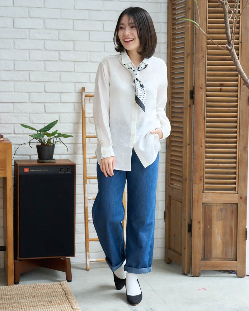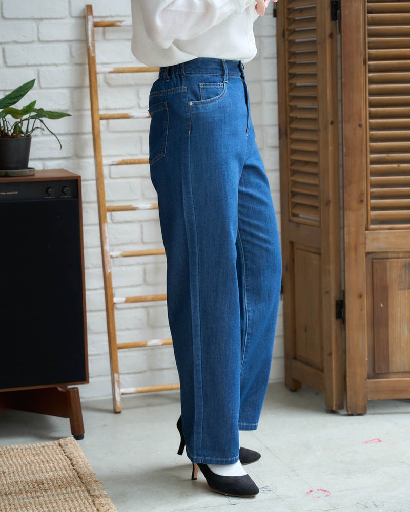 麻混のサラッとした清涼感が心地よい、夏を先取りする軽量デニムパンツ。一日中履いていても締め付け感のないストレスフリーなフィット感にこだわりました。程よいゆとりのストレートシルエットが、脚をスッキリ美しく見せてくれます。軽快な足取りで街歩きや旅行を楽しみたくなる一本です。