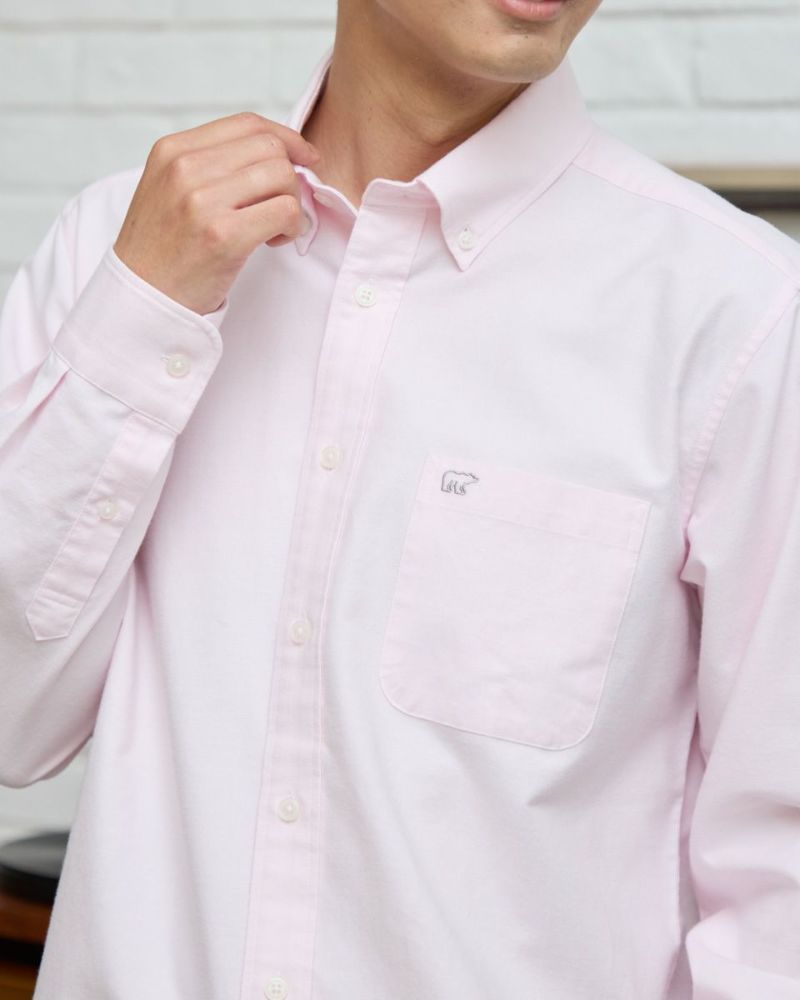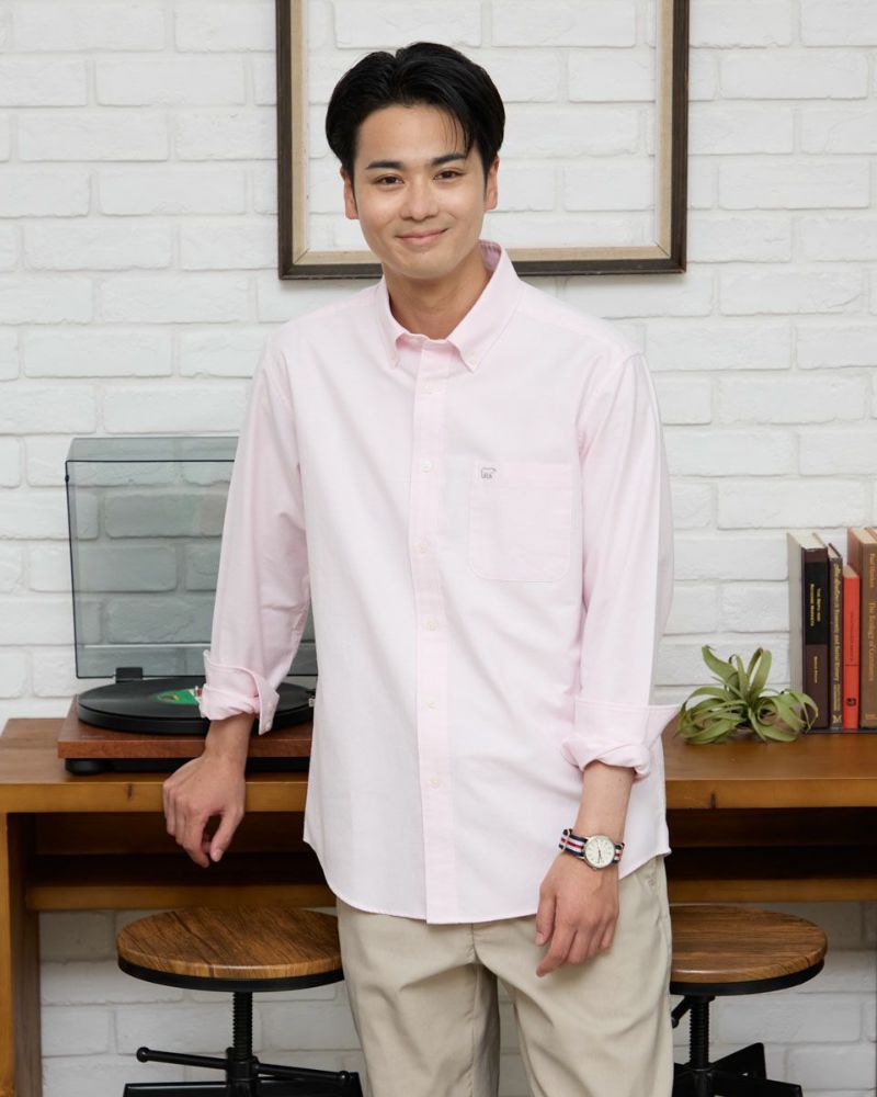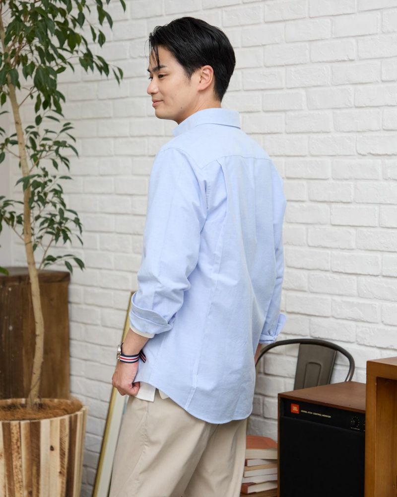 ボタンダウン襟のオックスシャツです。生地は緯糸に太番手を使用し肉感があり、表面にピーチ起毛をかけ製品柔軟洗いをかけることでふっくらとした柔らかな風合いに仕上げました。お洗濯後のアイロンがけが大変・・・なんてこと、ありますよね?イージー加工を施していますのでお手入れが簡単です。ホワイト、ピンク、クリーム、サックスのカラーバリエーション。迷ったらこれ!と言える万能アイテムです。一枚持っているだけで、毎日のコーディネートがぐっと楽になります。 モデル身長: 176 cm 着用サイズ: L サイズ Golden Bear Men's シャツ (Men's) レディースサイズはこちら 【着用アイテム】317RC101 ブレザー 314RC412 ラガーシャツ 314R8452 長袖ポロシャツ 314R8701 チノパン 314R8703 イージーパンツ