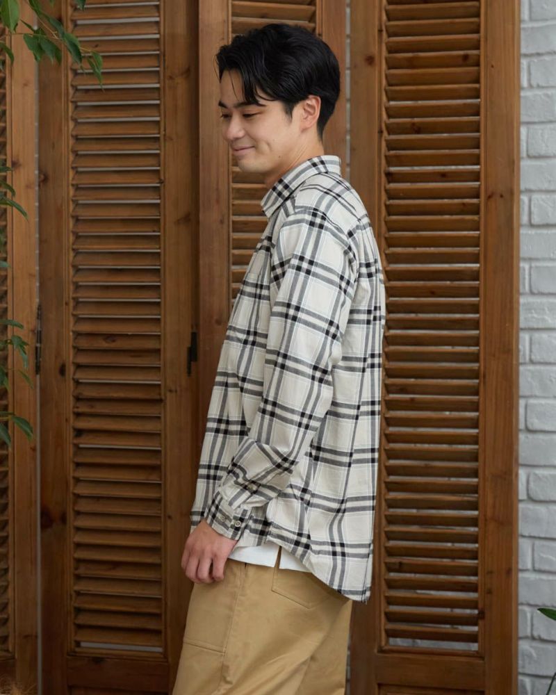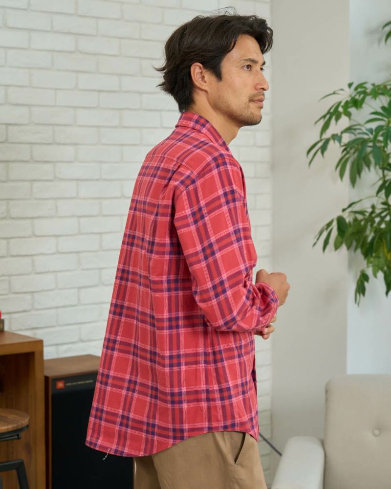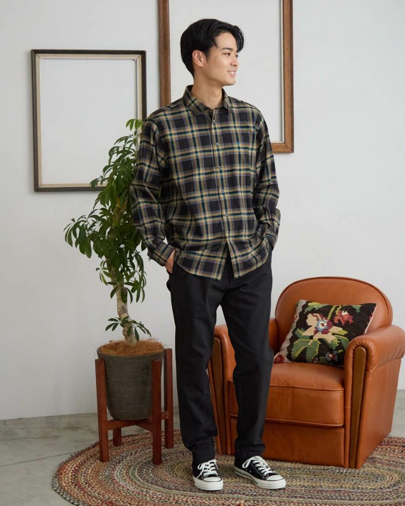 オーガニックコットン100%を甘く撚り合わせたチェックのレギュラー襟シャツです。両面に微起毛を施し、ふんわりとした柔らかな風合いに仕上げました。着心地のよさ、着回し力を兼ね備えた秋冬のワードローブに欠かせないシャツです。 モデル身長: 176・180 cm 着用サイズ: L サイズ Golden Bear Men's シャツ (Men's) レディースサイズはこちら 家族コーディネートアイテムはこちら 【着用アイテム】314RD407 N-1ジャケット 314R8701 チノパン 315RC704 イージーパンツ 314RD710 イージーベーカーパンツ 314RD711 超ストレッチパンツ