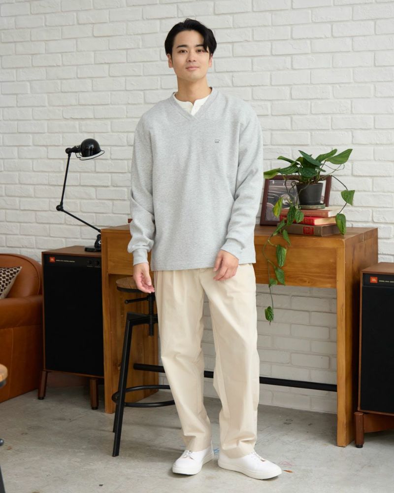 ふんわりと柔らかい、ミニワッフル素材の長袖ヘンリーネックTシャツです。凹凸のあるミニワッフル生地は、肌にまとわりつきにくく、さらりとした着心地が特徴です。首元をすっきりと見せるヘンリーネックは上品な雰囲気を演出します。インナーとして着回し力が高く、様々なスタイルを楽しめます。