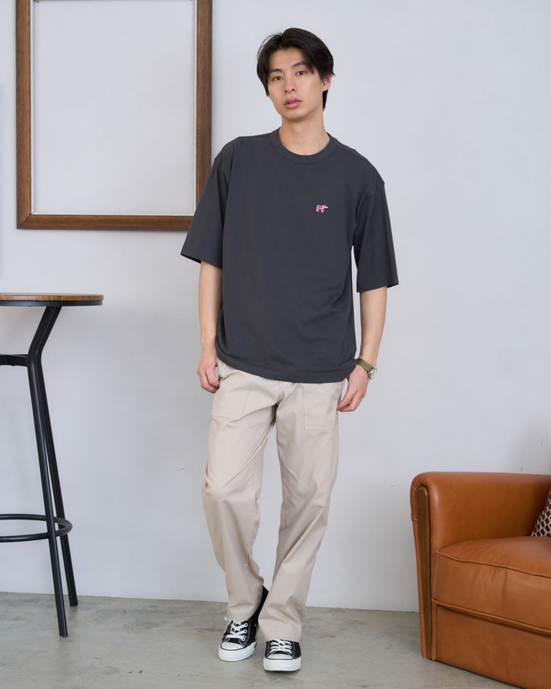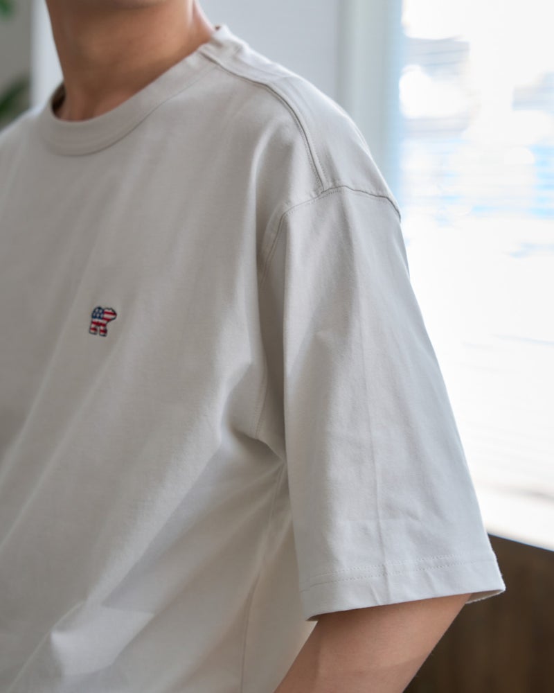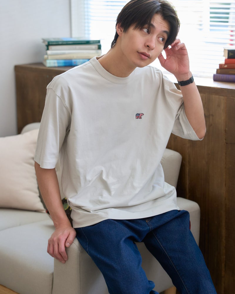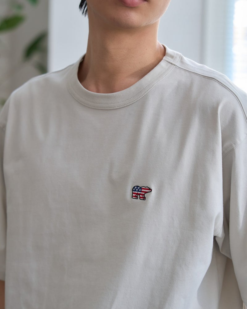 左胸に配した星条旗を纏ったクマの刺繍が、アイコニックな遊び心を添えてくれる5分袖Tシャツです。素材には環境にも肌にも優しいオーガニックコットンを100%使用。天然素材ならではの柔らかな風合いを楽しみつつ、ゆとりのあるリラックスシルエットが、今の気分にぴったりの軽快な佇まいを演出してくれます。少し長めの袖丈で一枚着でも品よくまとまり、気になる二の腕周りをカバーしてくれるのも嬉しいポイント。シカゴの都会的で活気に満ちた街並みにも馴染むような、気取らないけれどどこかキャッチーな大人のスタンダードアイテムです。